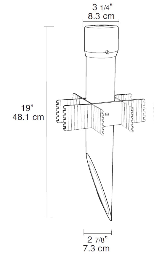 This 19-inch landscape mounting post is engineered for ground-level lighting installations in commercial and hospitality outdoor environments. Constructed from durable Schedule 40 PVC, it features a robust stabilizing grid with teeth and ribs to ensure maximum in-ground stability. The post includes a ½" threaded cap compatible with standard floodlights and lawn fixtures, providing a secure and reliable mounting solution.