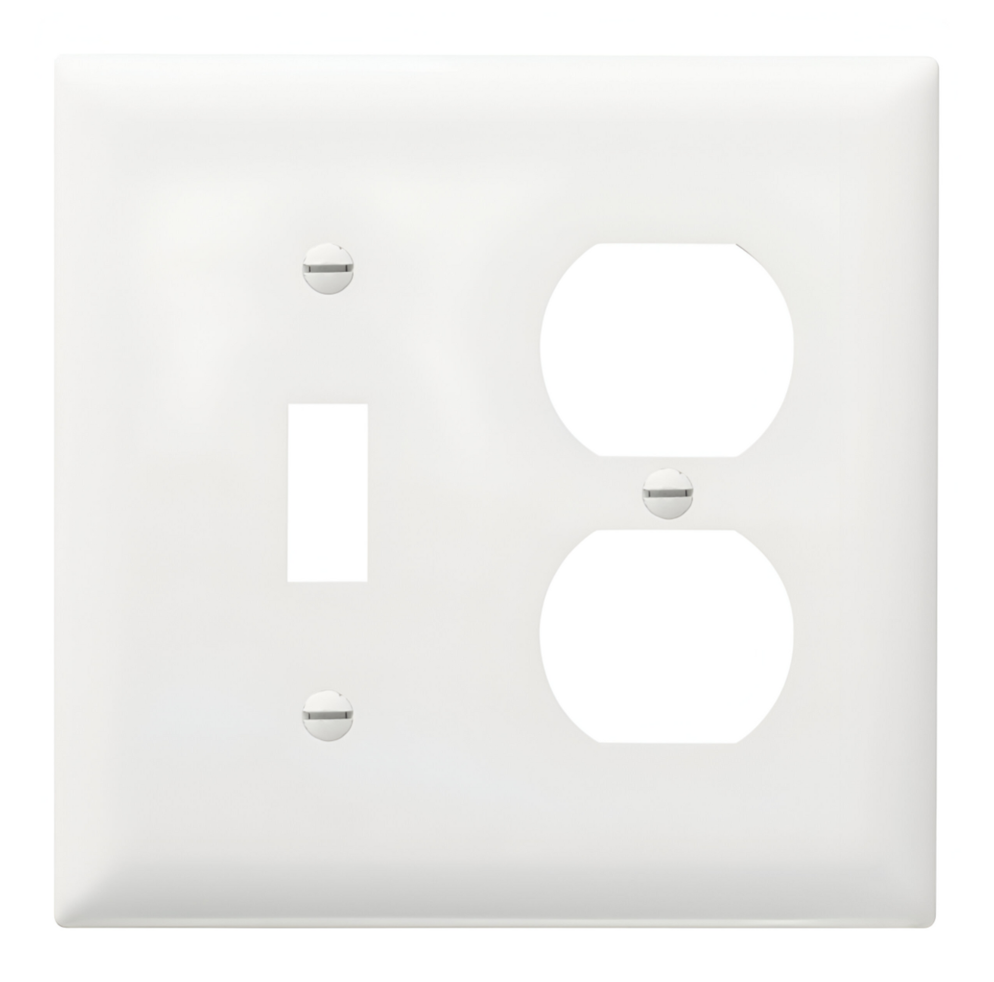Combination wall plate provides maximum durability in plastic wall plates. Self-extinguishing nylon construction makes these wall plates virtually unbreakable. They are 3/16 of an inch higher and wider than typical plastic wall plates - not enough to be apparent to the eye, but the extra size cuts cost by reducing dry wall rework.