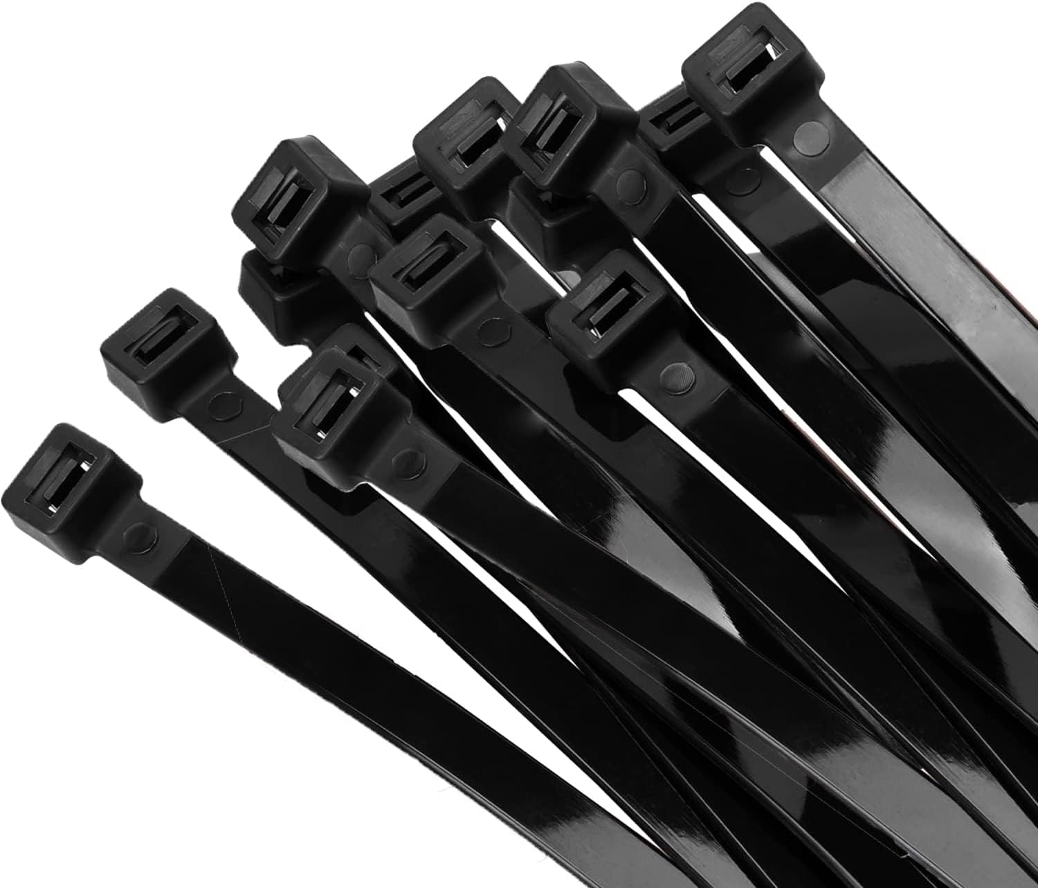 Heavy-duty 24" black zip ties engineered for demanding applications. This 300-piece pack features industrial-strength nylon 66 construction with 250 LBS tensile strength and 12mm width for superior holding power. UV-resistant and temperature-rated from -35°C to 85°C, these ties withstand harsh outdoor conditions without degradation. Fireproof material resists aging, acid, and corrosion. The curved tail design enables quick, smooth fastening with minimal effort. Ideal for HVAC applications, industrial projects, outdoor installations, and heavy-load bundling tasks.