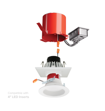The 4″ Fire-Rated IC Airtight Remodel Housing is designed for retrofit applications requiring 2-hour fire-rated ceiling compliance. Its IC-rated, airtight construction enhances safety, energy efficiency, and performance in residential and commercial settings.