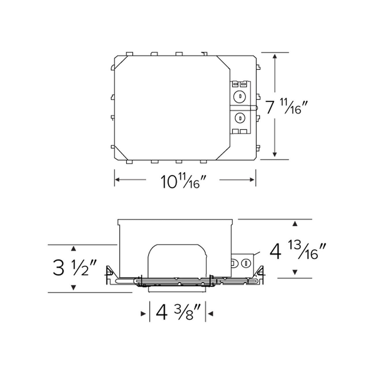 4″ Fire Rated ICA Shallow New Construction LED housing. Compatible with 4" LED inserts. 2-hour fire rated. Quick Connect terminal connector for easy installation.