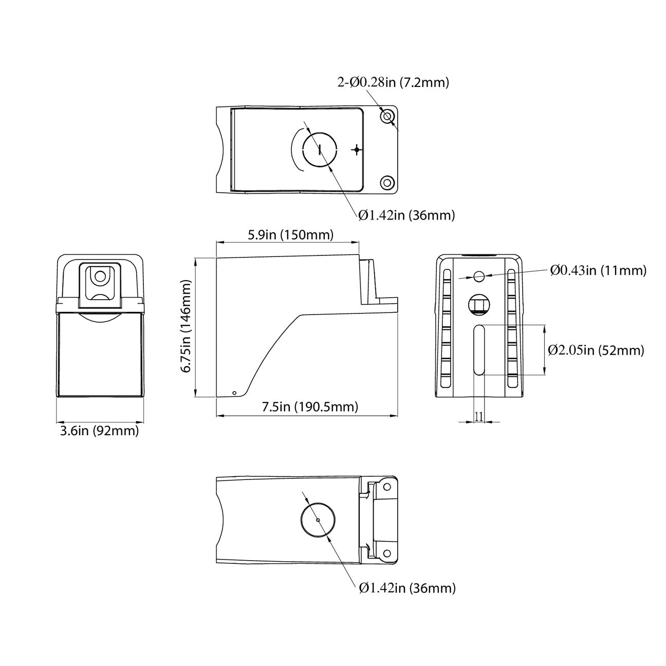 6" Pole Mount arm required for JAL-Series Area Light heads to attach to a Square Straight Steel Pole.