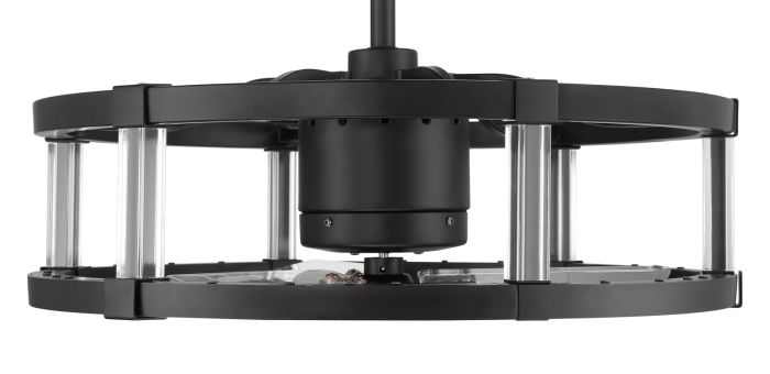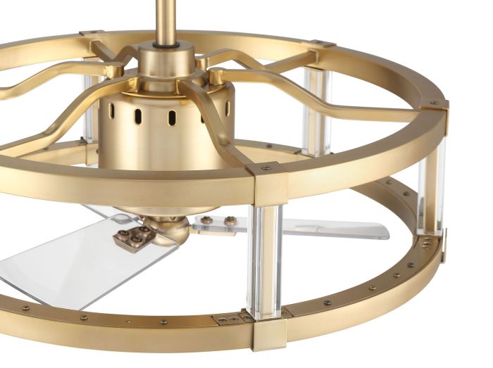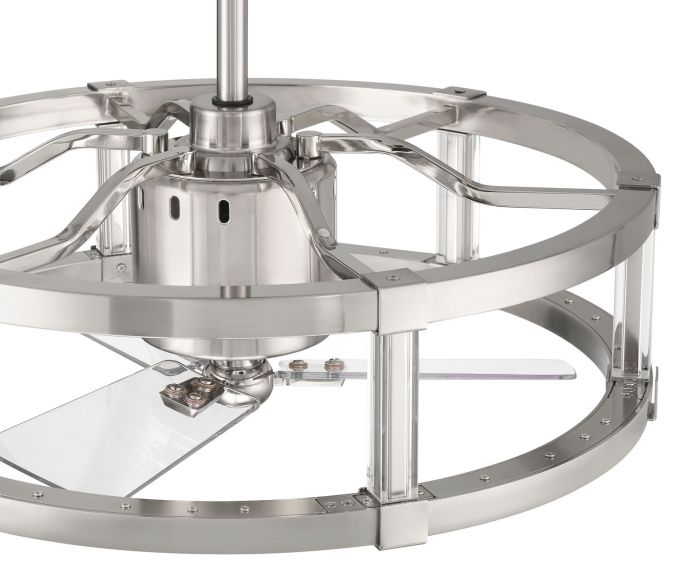 The Alexis 24" Fandelier by Craftmade offers ideal combination of the beautiful style of a contemporary drum pendant with the intelligence of a Wi-Fi enabled, heavy-duty, 3-speed reversible motor ceiling fan with a set of three custom 18" clear polycarbonate blades. Both the interior fan and the integrated dimmable 24 Watt 3000-5000 CCT LED lit bottom ring of the fandelier can be controlled using the included handheld remote control or through the integrated Wi-Fi feature using the Bond app which allow access to additional functions including voice control, breeze, and timer functions compatible for use with most smart home devices, smartphones, and systems with no additional hub needed.