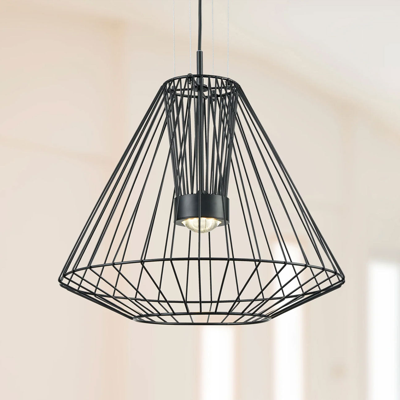 The Arctic collection uses basic wire rod as structure and aesthetic form. The seemingly continuous lines interconnect, creating a complex framework that encapsulates and emphasizes the light source. A substantial glass optic is the focal point of the lamp, augmented by the concentric rings of the lightweight latticework design.