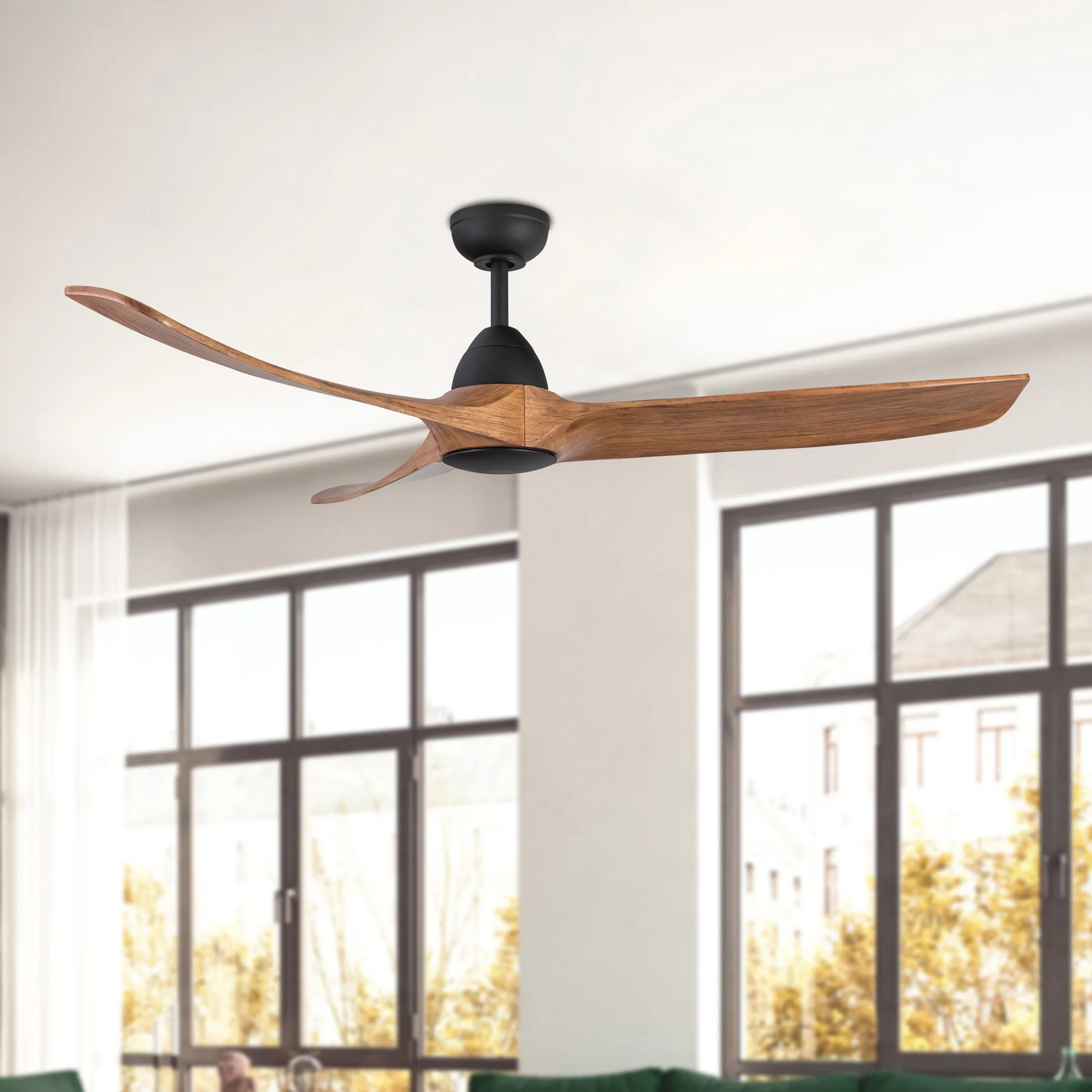 Crafted with meticulous detail and available in two exquisite finishes - dark walnut and natural oak wood - this fan is a statement piece that complements any decor. Its modern 3-blade design, adorned with sleek matte black accents, adds a touch of sophistication to any room. Choose your desired configuration, with or without the optional light kit, and experience the convenience of smart fan technology, powered by the Smart by Bond app, or opt for the included handheld remote for effortless control.