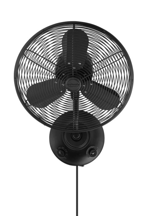 Increase your cool, indoors or out, with the retro-inspired damp-rated Bellows I 16" wall mount fan. With a heavy-duty, 3-speed oscillating motor and 14" blades, this wall-mounted fan combines the retro style of a table fan with the power and efficiency of a ceiling fan. Finished in your choice of outdoor damp rated flat black or aged bronze textured, it features separate knobs for oscillating and speed control. The fan can be hung and plugged in, with 40" corded plug or hard-wired if necessary.
