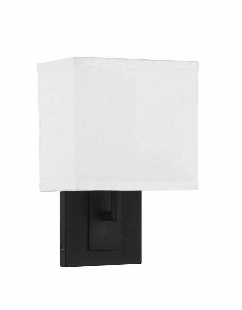 Elevate your room's aesthetic with the sleek and stylish two-toned design of the Brent collection, offering a perfect balance between contemporary sophistication and timeless charm. With an elongated tapered arm and a rectangular white silk half-shade, this fixture effortlessly enriches your wall space with a striking visual allure. Available in a single light, the Brent Polished Silver and Black Forged or Gold and Black Forged metal wall sconce exudes elegance.