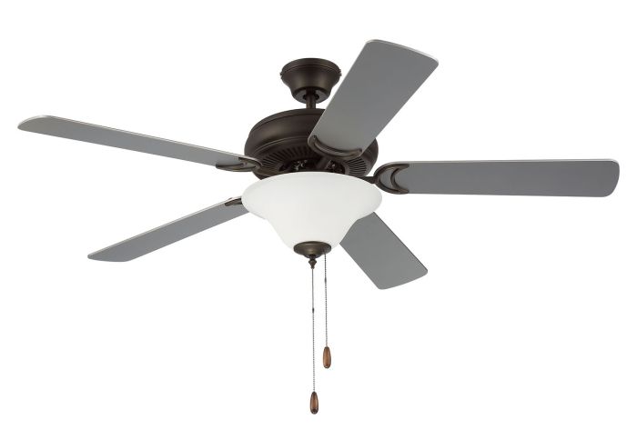 The Decorator's Choice with 2-Light Bowl Kit, a Craftmade classic ceiling fan, features an updated white frost glass light kit with dimmable 5.5W LED bulbs included, custom reversible blades(all except white) and our tri-mount system to accommodate flat, sloped or low ceilings. This efficient 3-speed fan is reversible, promising cool breezes during the summer months and warmer breezes during the cooler months. Universal remote control adaptable (sold separately).