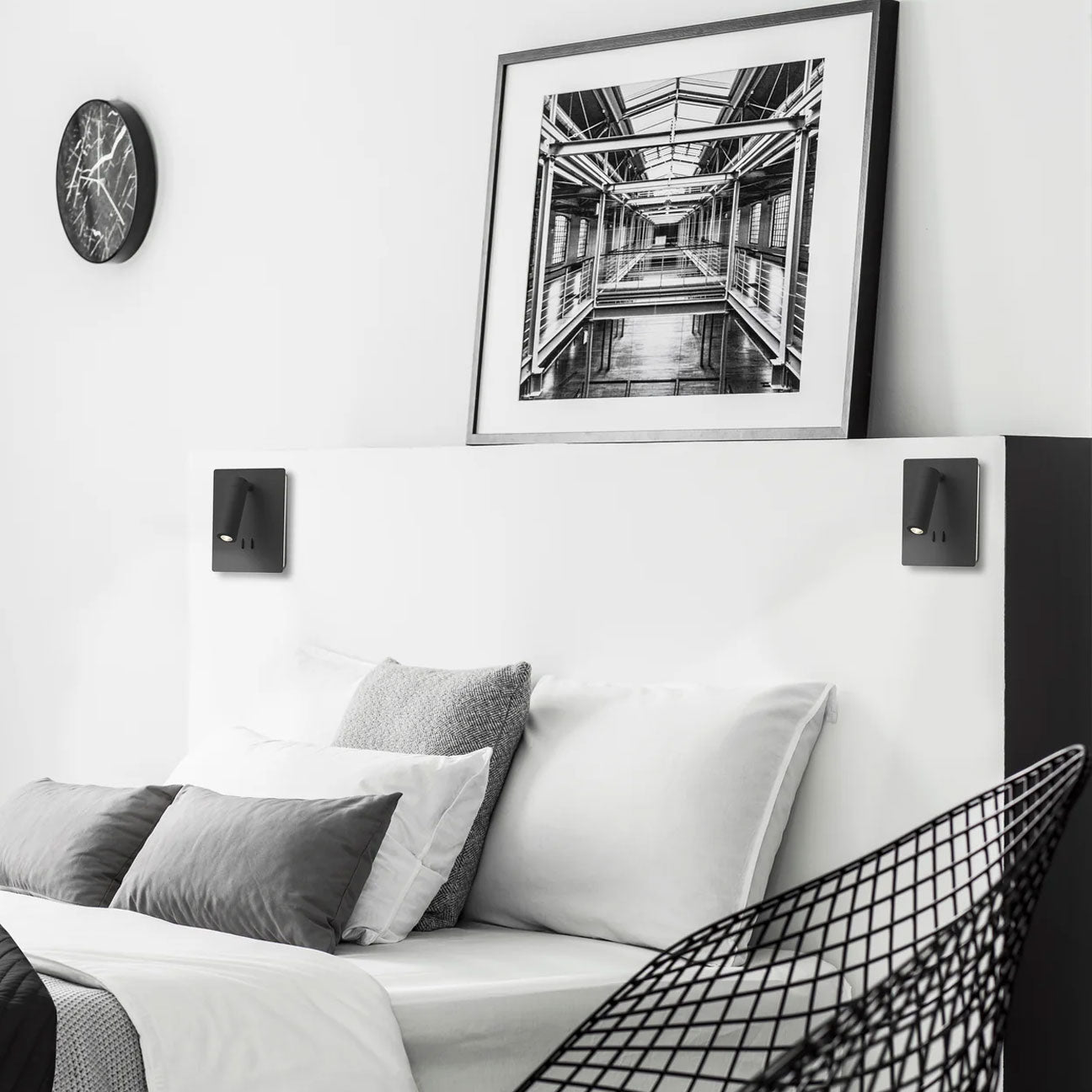 - Adjustable cylindrical aluminum spotlight attached to rectangular wall mount