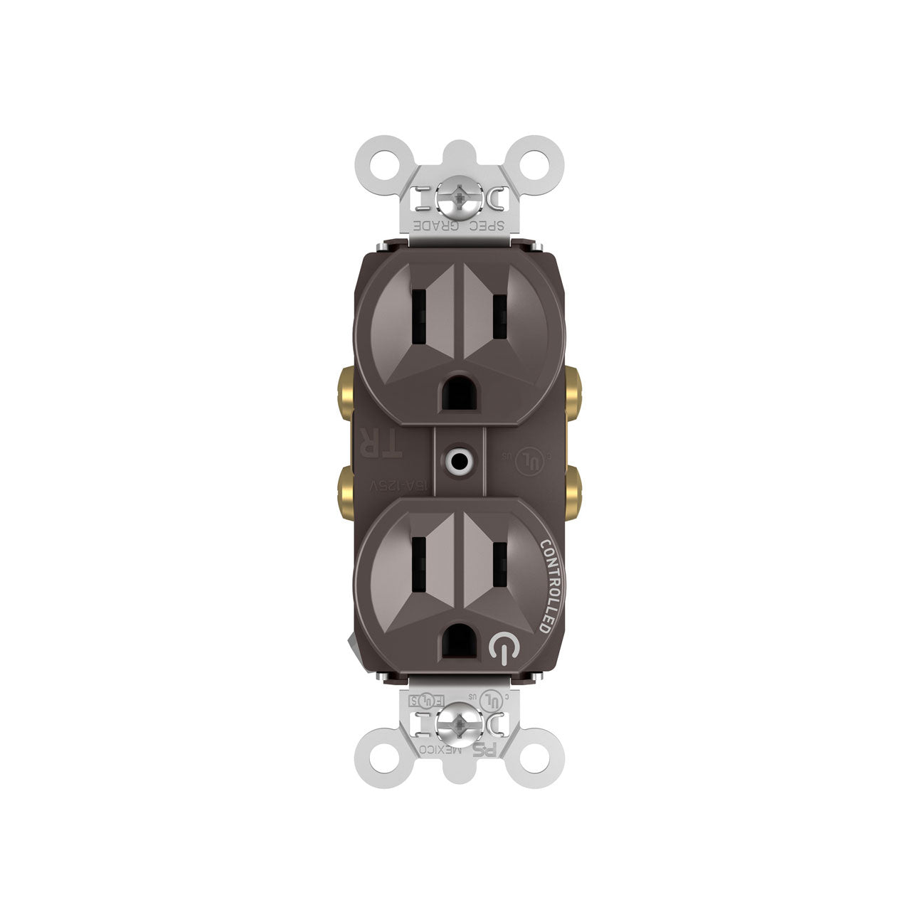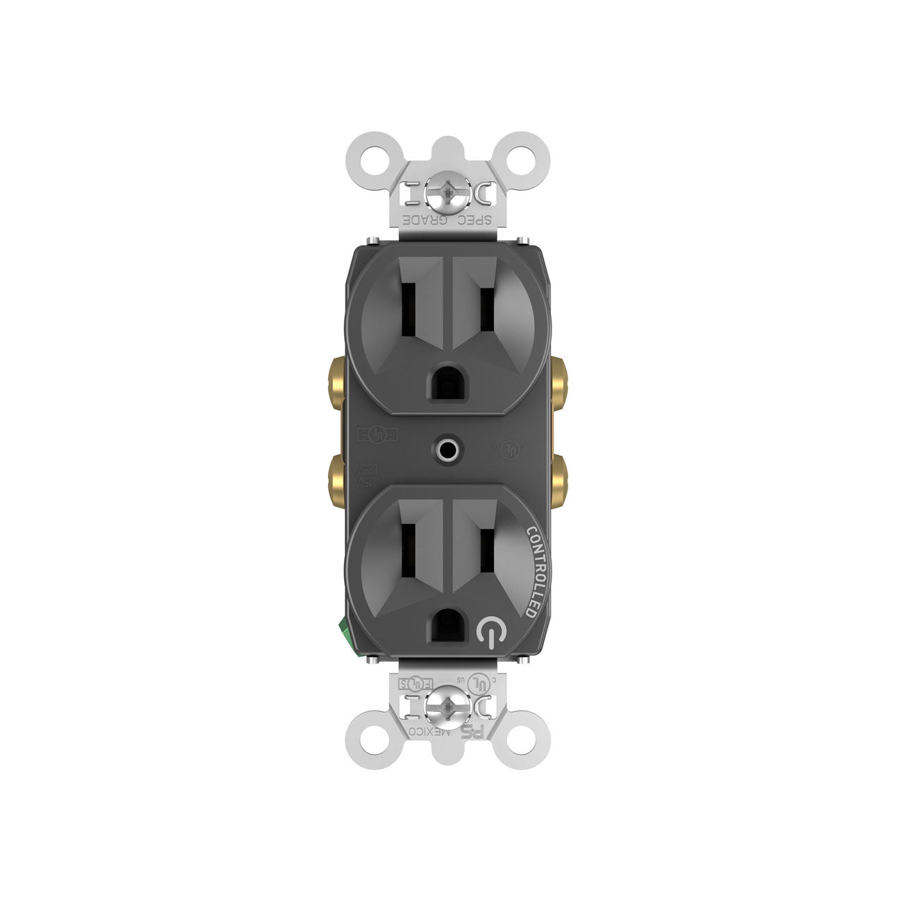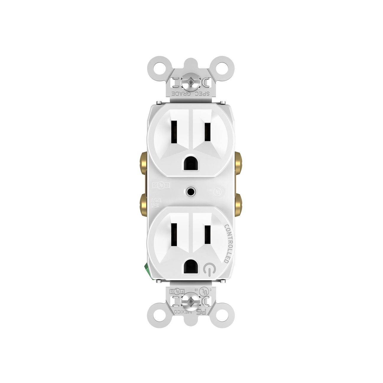 15A Duplex receptacle with permanent marking allows for long-lasting, easy identification of controlled receptacle for end-users. NEMA-approved and compliant with NEC, CA Title 24, and ASHRAE Energy Efficiency Standard 90.1.  Suitable for use in hotel guestrooms and any application requiring shut-off controls.