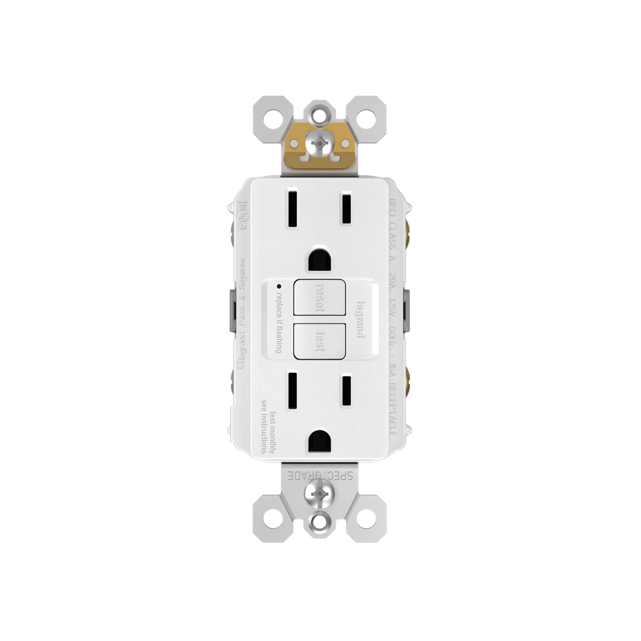 15A GFCI Receptacle automatically self-tests every three seconds to ensure reliable protection from shock due to ground fault occurrences. Meeting National Electrical Code requirements for ground fault protection, GFCI receptacles make it easier to recognize and fix trips right where they happen – no more confusion at the breaker box.