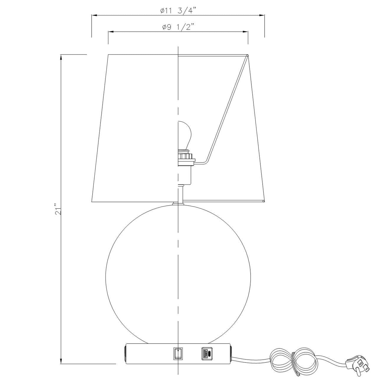 Lamp Base: Weighted base featuring felt protective non-skid padding secured to bottom
