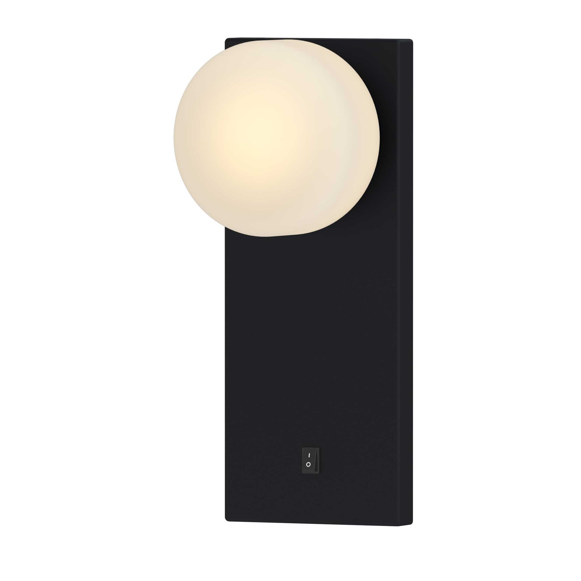 The prototype approved replacement headboard sconce at guest suites. It is a rectangular, graphite black, matte finish wall sconce with a black accessible rocker switch. It is commercial quality and UL listed for safety and comes with a standard 1-year warranty.