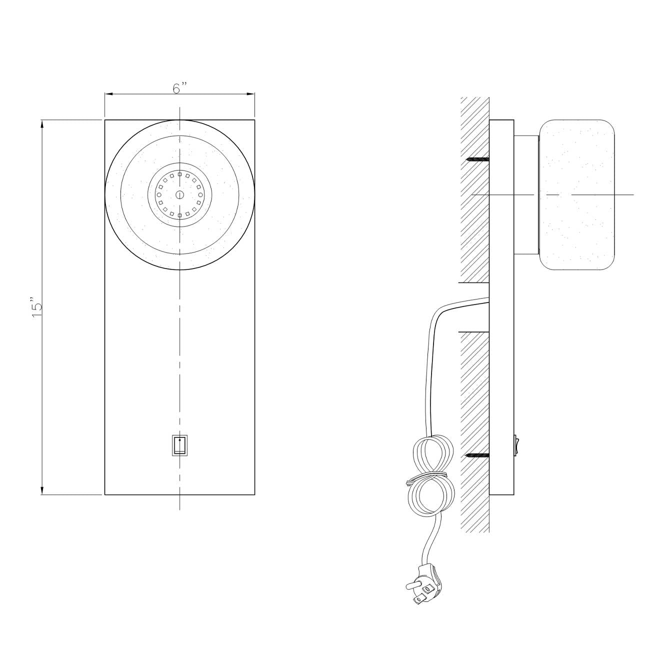 Dimensions: 6"(W) x 15"(H) x 5"(D); Backplate: 6"(W) x 13"(H) x 1"(D)
