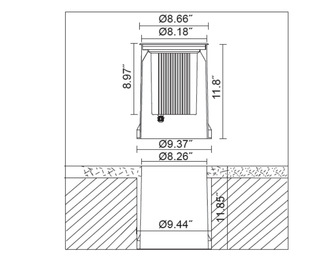 Teslyte ET8019 is an in-ground luminaire designed for durability and high performance, featuring optimized heat dissipation and a clean architectural design. The ET8019 can be installed in both concrete pavements and lawns. It is engineered to be walk-over safe and able to withstand various weather conditions. Perfect for building uplights and flagpoles, as well as other architectural feature lighting.