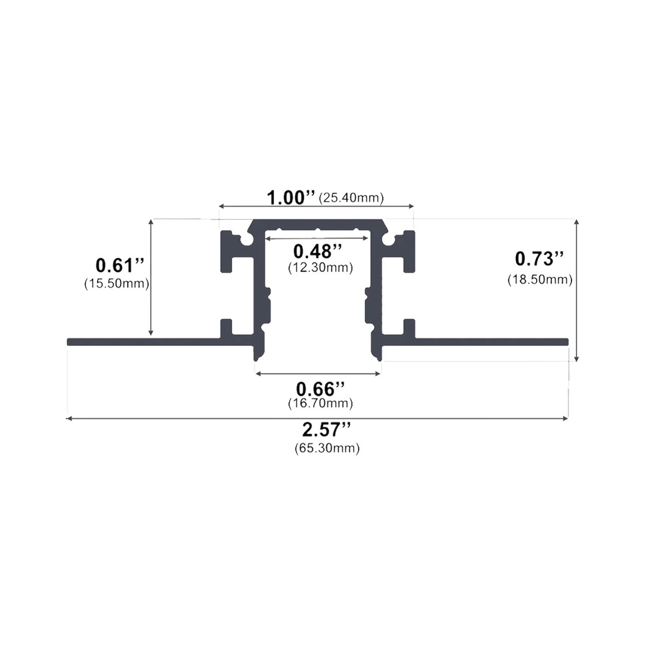 The J615 Series is a Trim-less Mud-In Drywall LED Channel compatible with LED Strips up-to 0.48'' (12.3mm) wide.