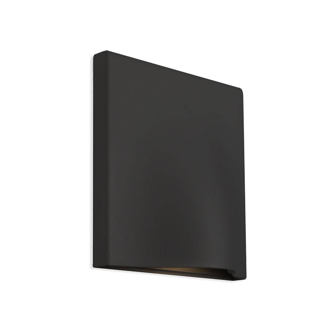 Lenox's die-cast aluminum housing is 8-inch square in its front view, but as the viewer moves to the side the fixture's profile becomes a gently swept curve suggestive of a water drop or perhaps a ship's sail filling with wind. Lenox aimed downwards through its polymeric diffuser lights both the mounting plane and floor. Lenox is available in black or grey finish.