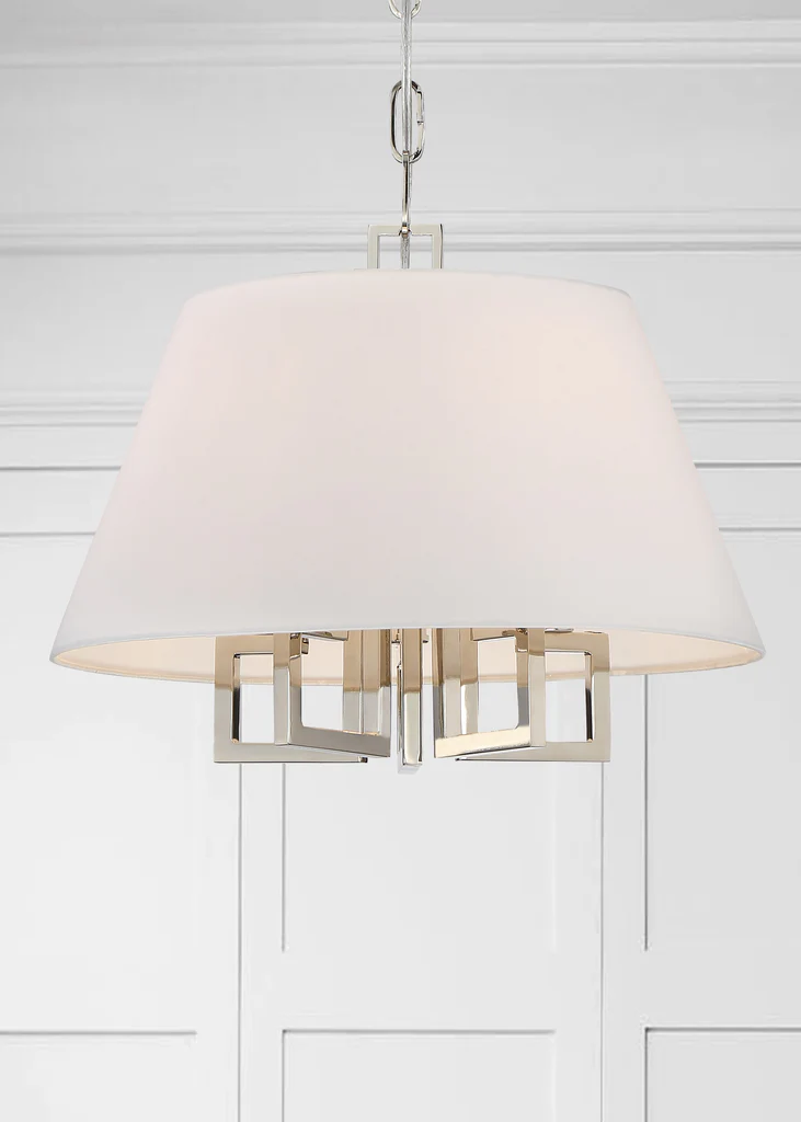 The signature Libby Langdon attention to detail is apparent in the Westwood collection. This light features an angular frame topped with crisp white shades for an electric yet modern design. Perfect for a dining area, living room or even entry way, this fabulous light will add the perfect accent to any space.