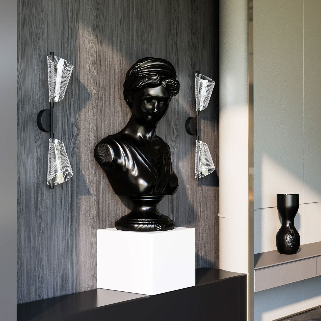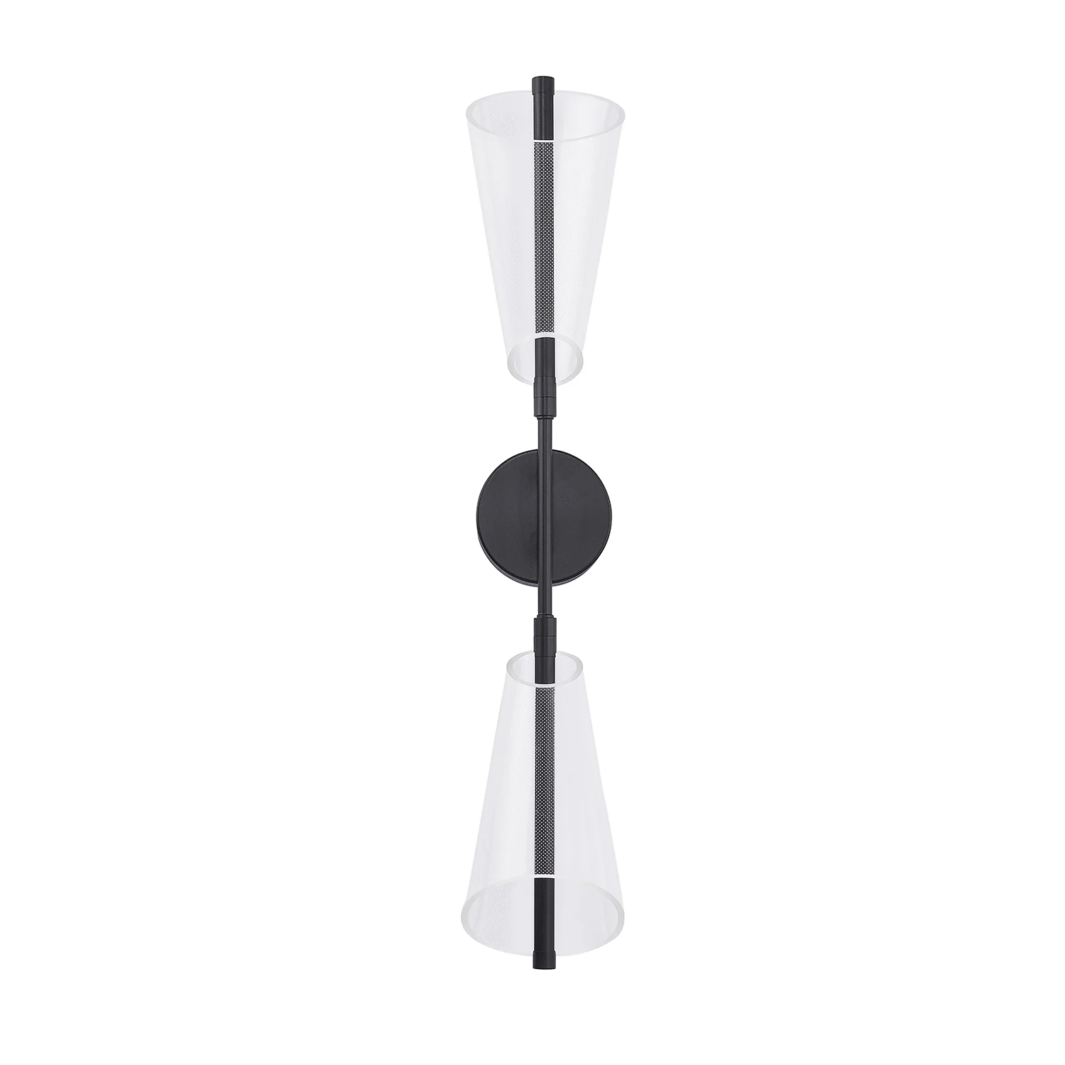 Classic shapes take new form in the stunning new Mulberry collection. Minimal, modern forged bodies and striking edge lit shades make up this one-of-a-kind collection. Each shade of the Mulberry is crafted with clear etched acrylic, creating the modern glow seen throughout the pieces of this collection. Available in both Brushed Gold or Matte Black accents.