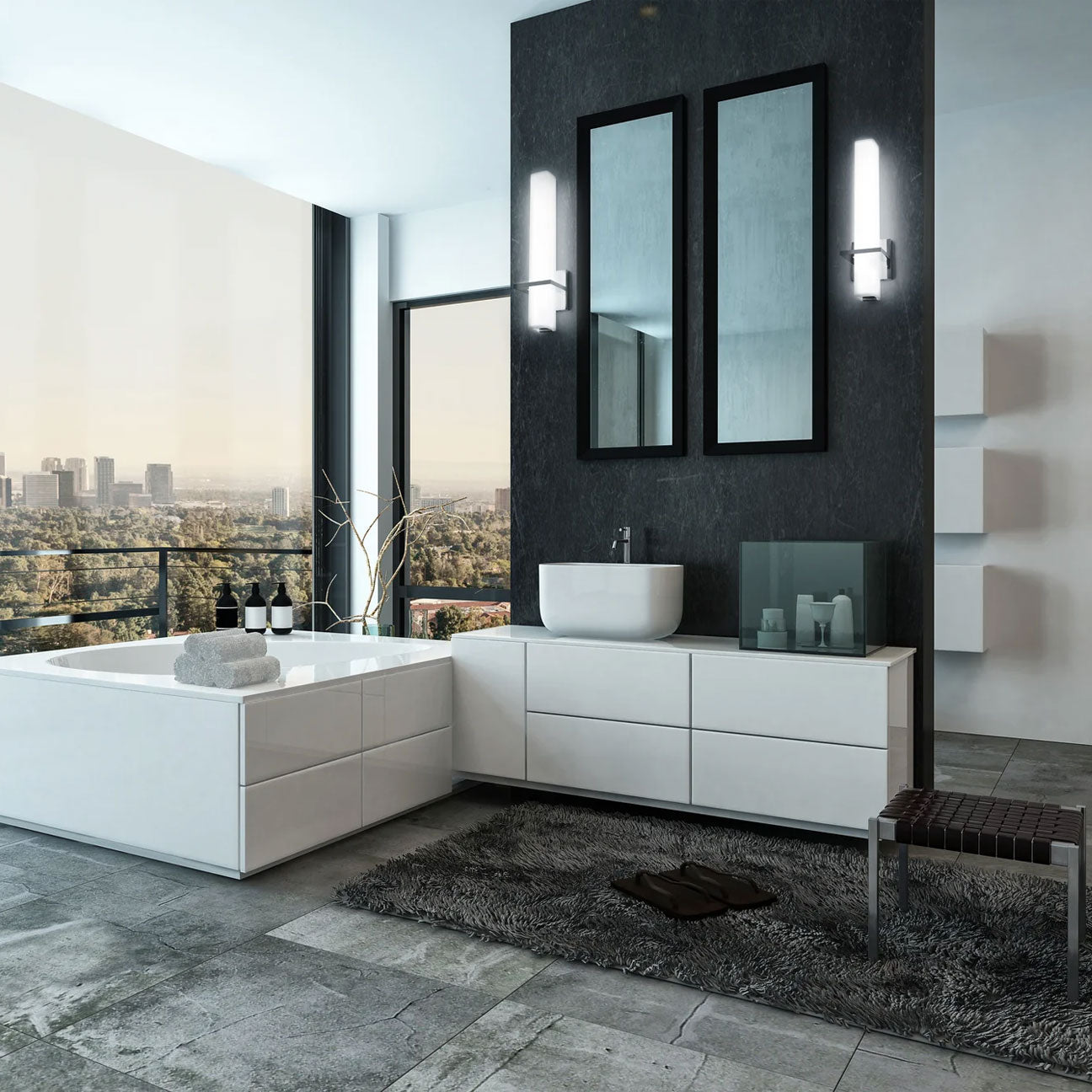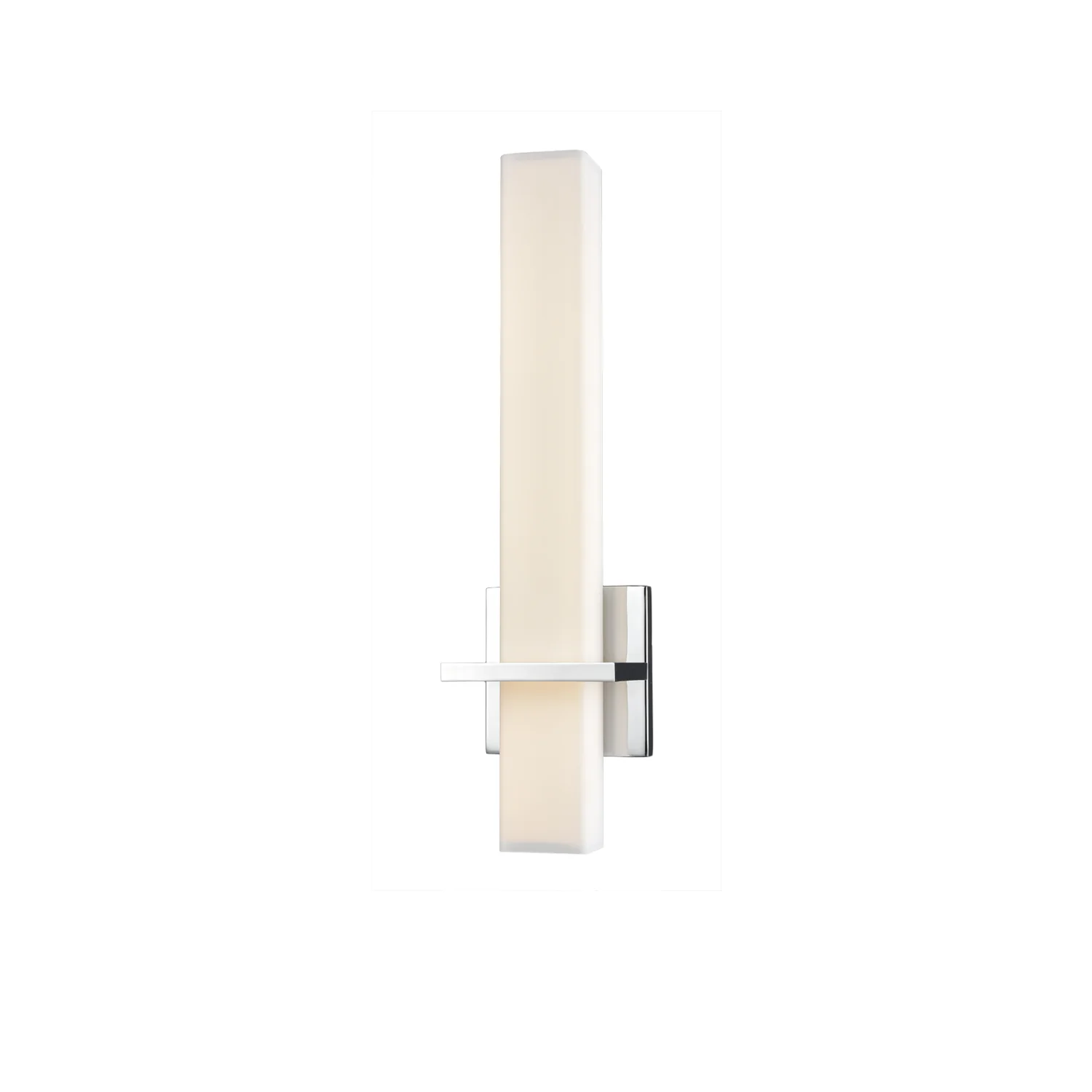 Round or square plated or painted steel frame and wall plate. Rectilinear opal glass diffuser. Outward emitting wall light. Custom options available.