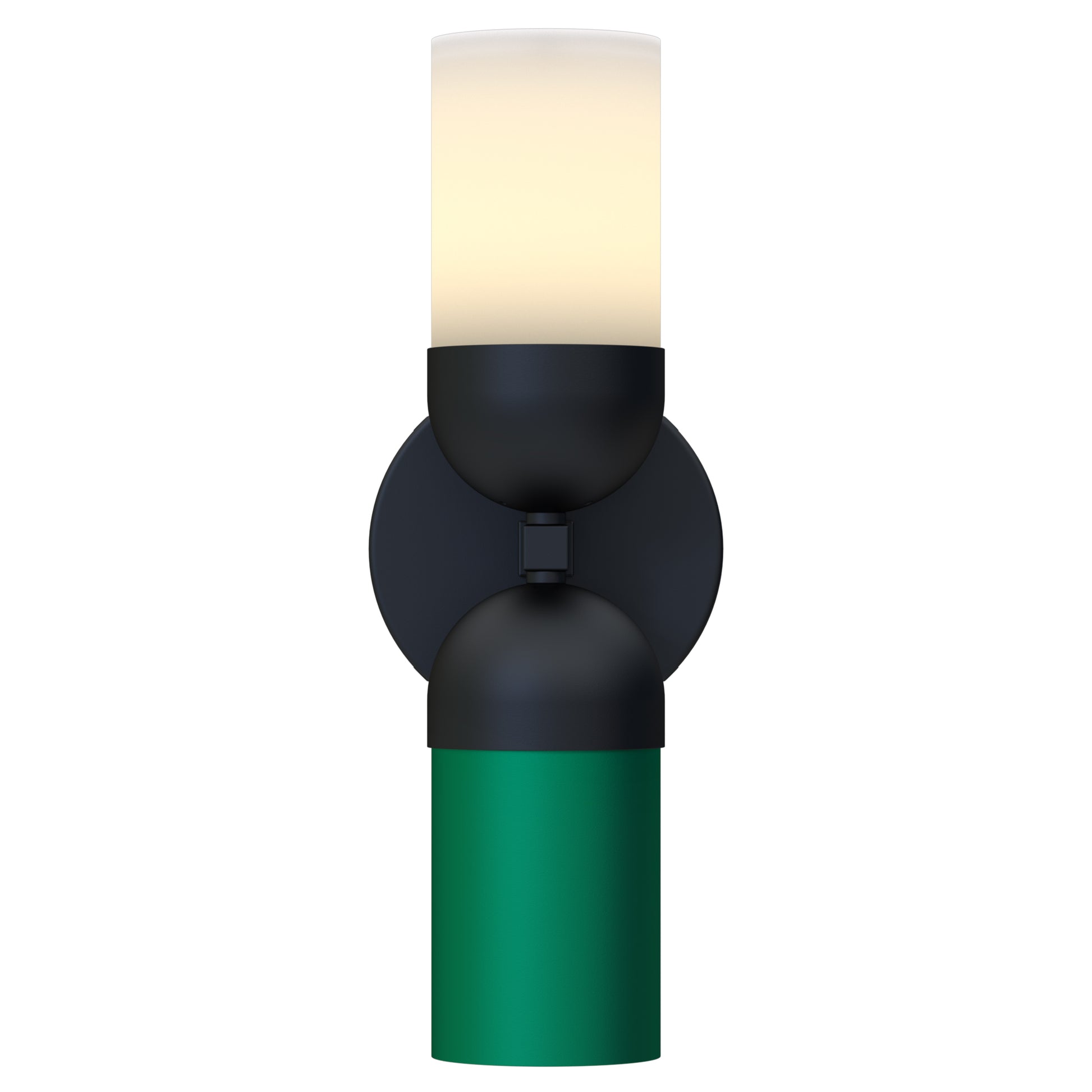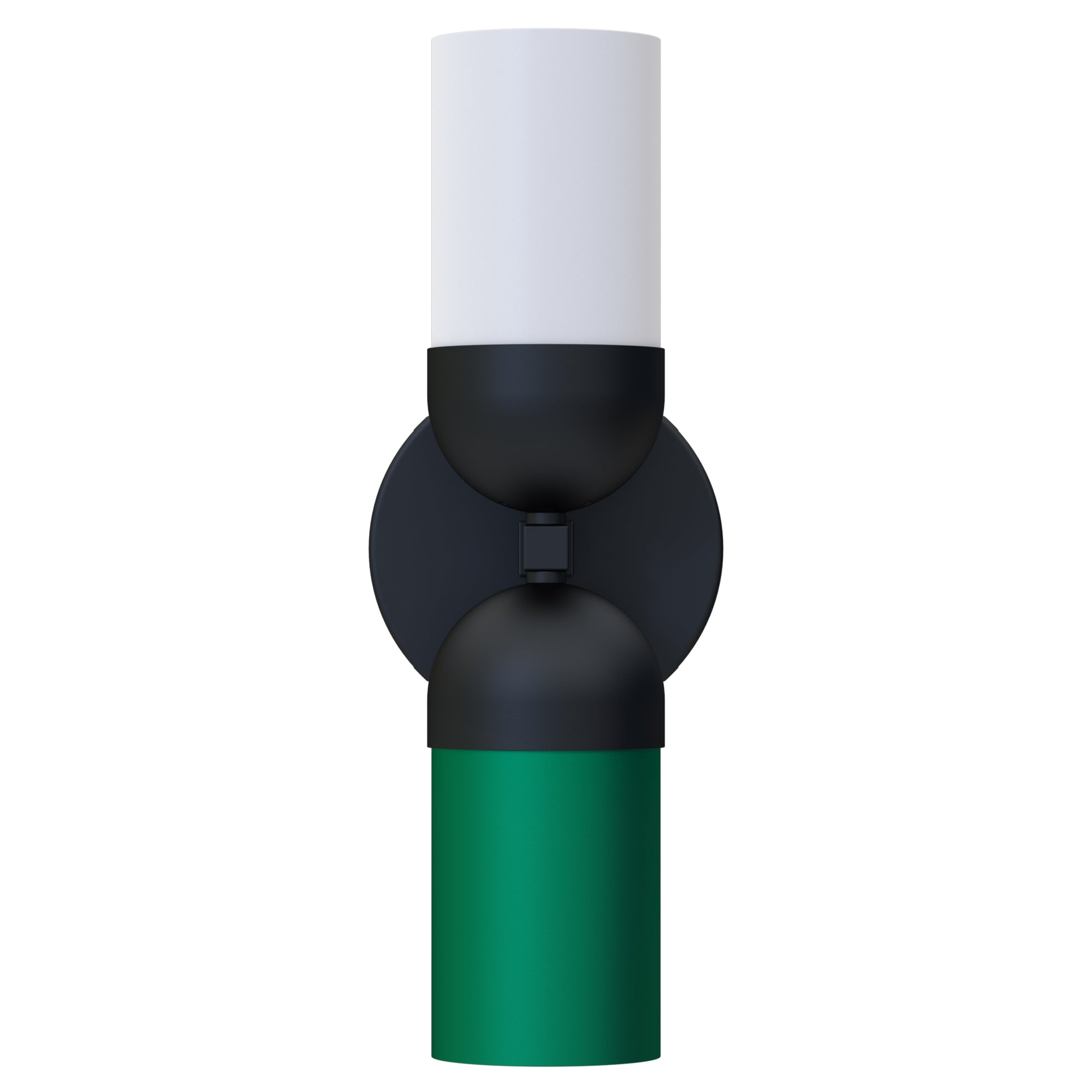 The prototype approved direct/indirect wall sconce at public area corridors. It comes in Graphite Black, matte finish body; frosted, white matte acrylic lens top shade; and Device Green steel bottom shade. It is commercial quality and UL listed for safety and comes with a standard 1-year warranty.