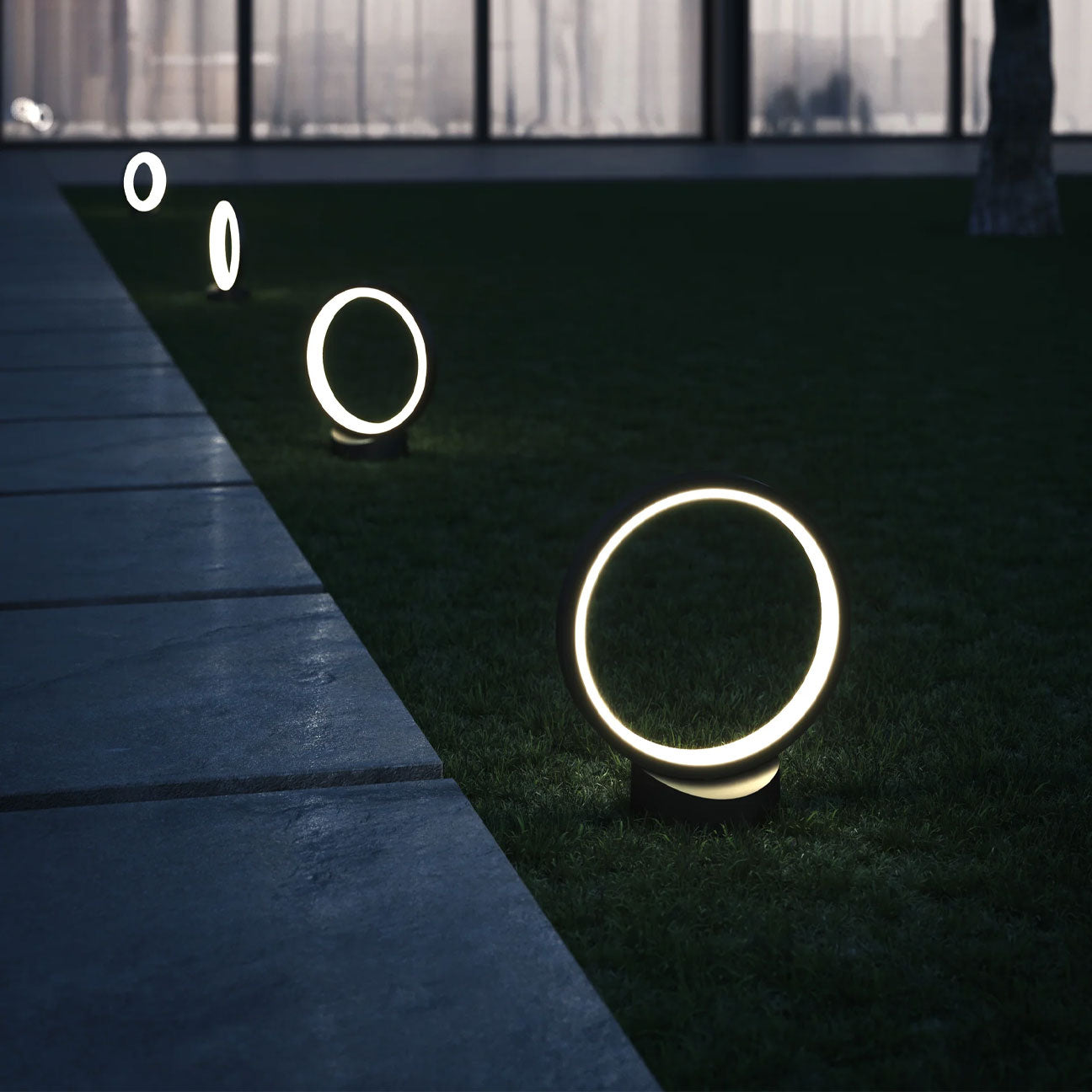 Circular frames of illumination hang or float on the ground in outdoor spaces like never before with this unique collection. Hang a few Parc Pendants or line a walkway with Parc fixtures outdoor for an instant statement look.
