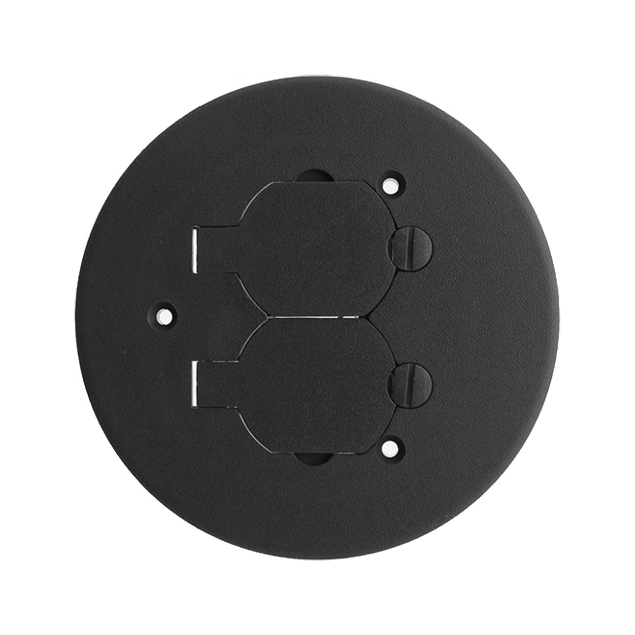 Nonmetallic black duplex cover plate with flip lids for carpet installations