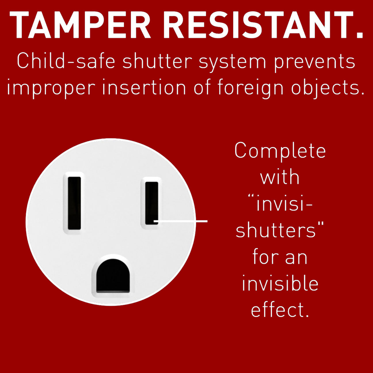 - Protects children with a patented tamper-resistant shutter system that prevents improper insertion of foreign objects, complete with "invisi-shutters" for an invisible effect.