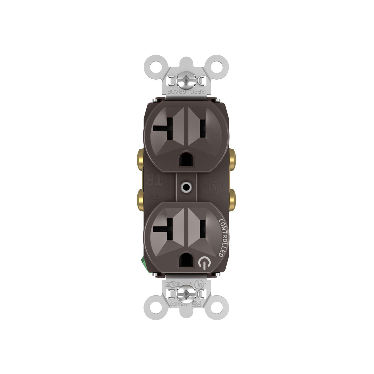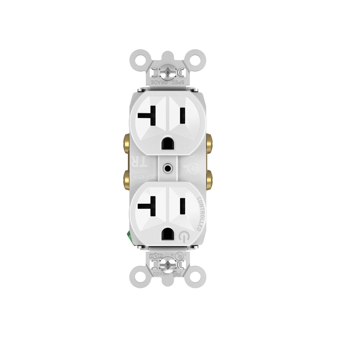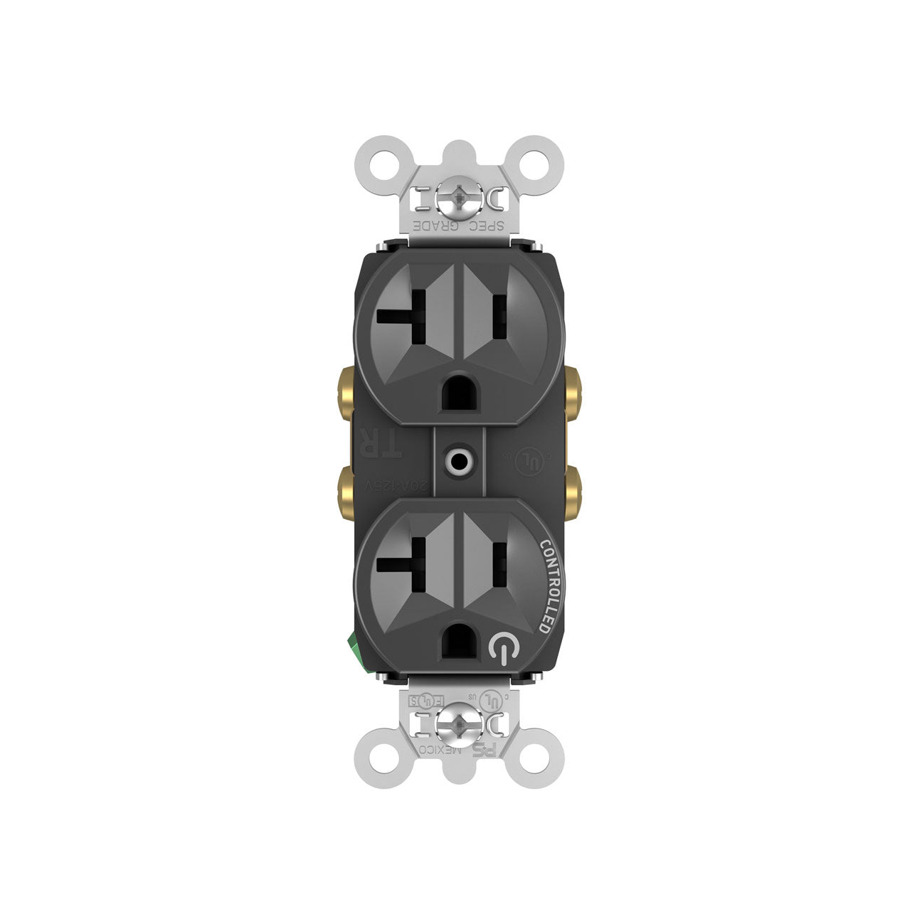 20A Duplex receptacle with permanent marking allows for long-lasting, easy identification of controlled receptacle for end-users. NEMA-approved and compliant with NEC, CA Title 24, and ASHRAE Energy Efficiency Standard 90.1. Suitable for use in hotel guestrooms and any application requiring shut-off controls