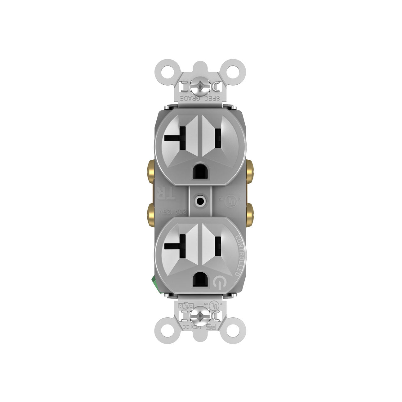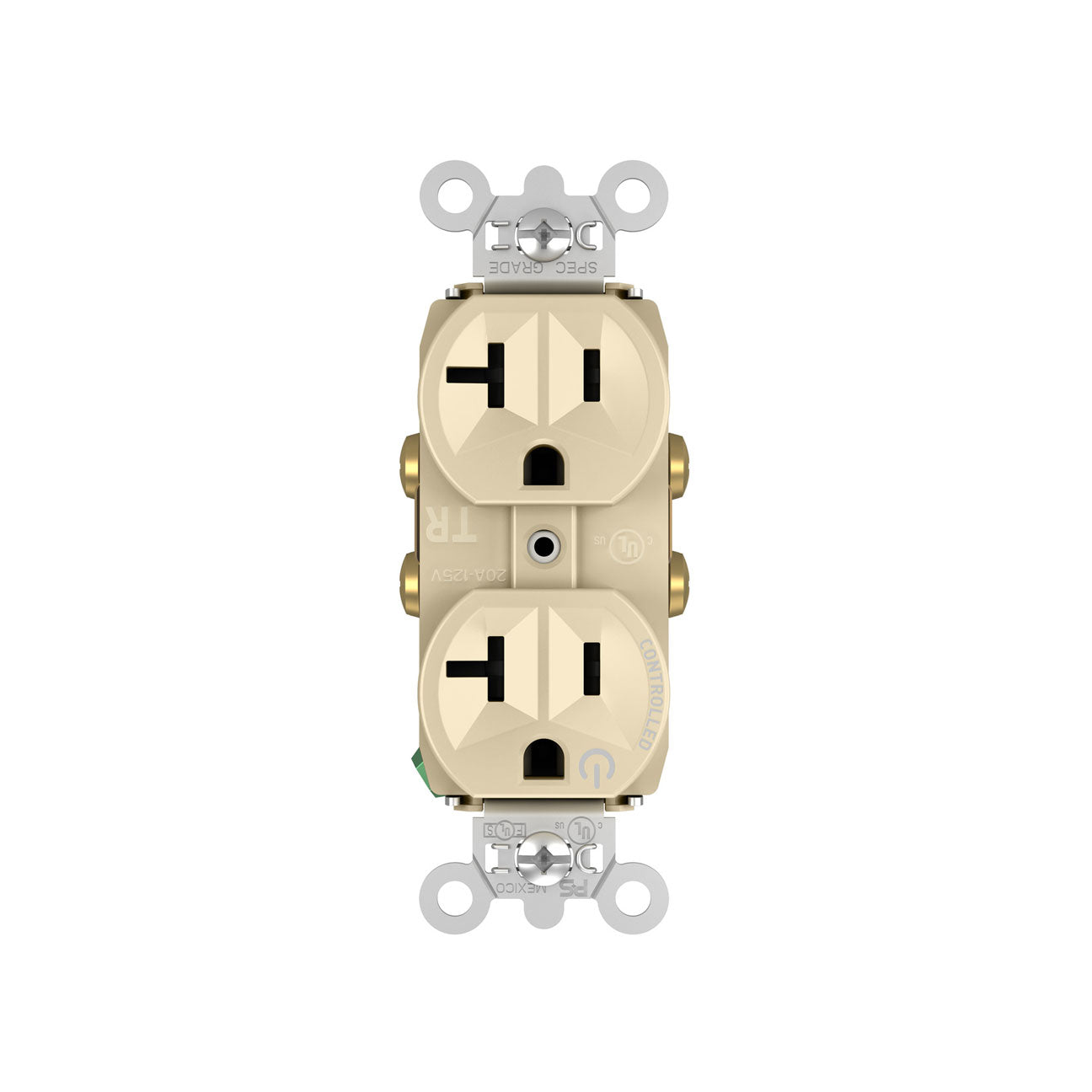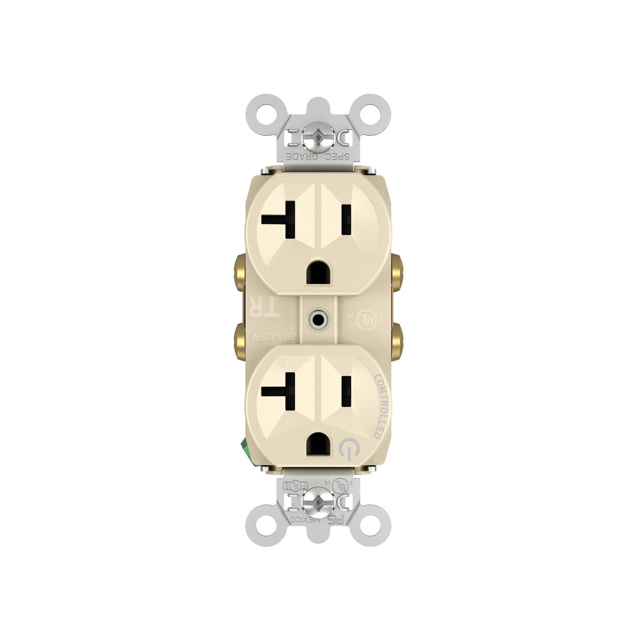 20A Duplex receptacle with permanent marking allows for long-lasting, easy identification of controlled receptacle for end-users. NEMA-approved and compliant with NEC, CA Title 24, and ASHRAE Energy Efficiency Standard 90.1. Suitable for use in hotel guestrooms and any application requiring shut-off controls