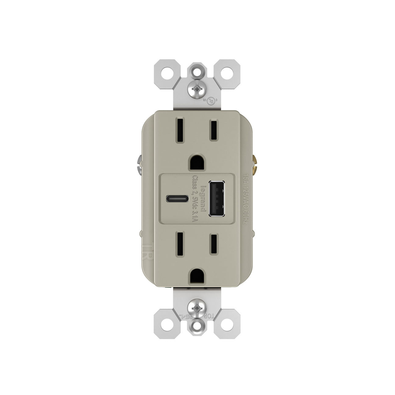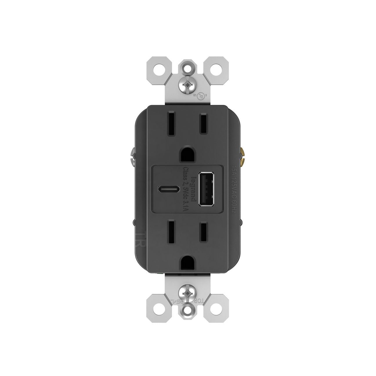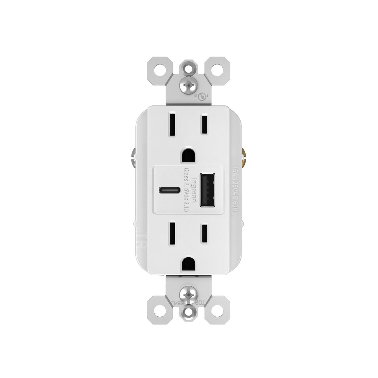 Charge phones, tablets and more up to 40% faster, with Ultra-Fast USB Outlets from the radiant® Collection. With an industry-leading 27W of power supplying the included USB Type-A and USB Type-C connections, this outlet helps you get that full battery feeling with convenience and speed – no bulky adapters needed. Easily replacing traditional outlets in as little as ten minutes, the Ultra-Fast updates your space with advanced functionality and the sleek, clean lines of radiant for a sophisticated look.