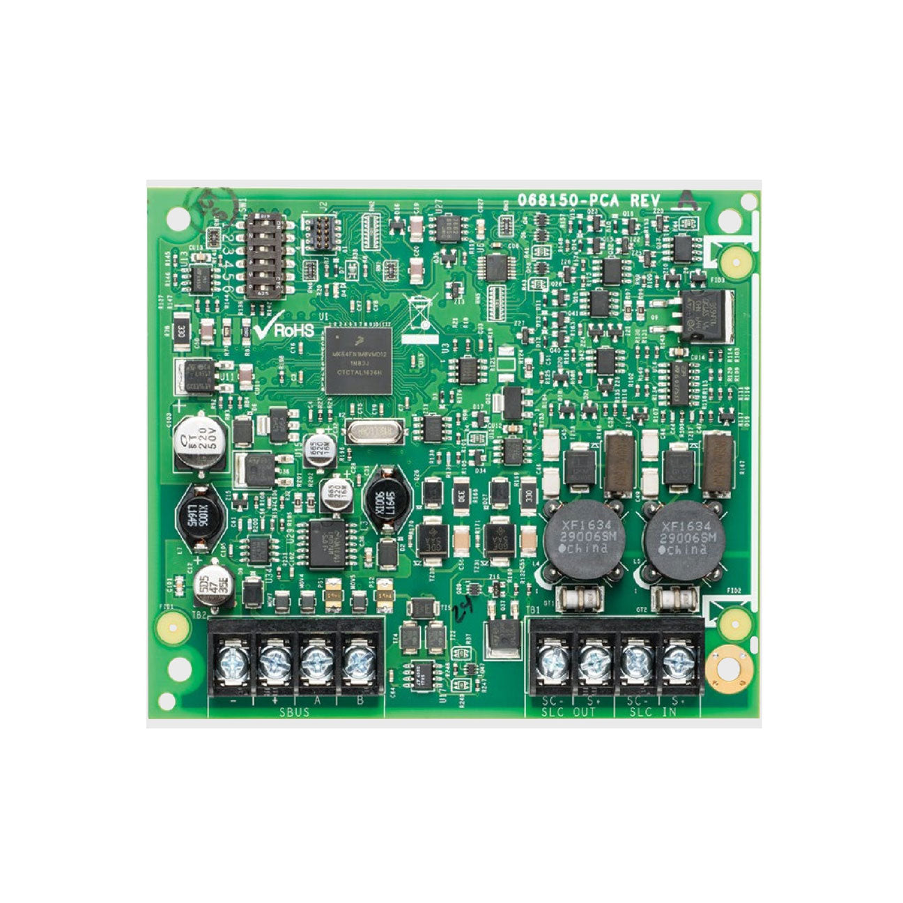 Farenhyt/Silent Knight 6815 is a signaling line circuit (SLC) expander for use with the Farenhyt Series IFP-300/ECS or IFP-2100/ECS analog/addressable fire alarm control panel (FACP). Use the 6815 to add more SLC devices of the same protocol to the IFP-2100/ECS or IFP-300/ECS control panel. Additional 6815;s support 159 IDP, SK or SD devices, and 159 IDP, SK or SD modules for a maximum of 2100 points per IFP-2100/ECS or 300 points per IFP-300/ECS. The number of 6815's used is limited by the number of SBUS devices. 6815 will support IDP, SK, SD, or SWIFT devices. The 6815 communicates with the FACP via an RS 485 system bus. A green LED on the 6815 board blinks to indicate good communication. If an addressable device on a 6815 fails, the loop communicates the failure to the FACP and continues to operate normally.