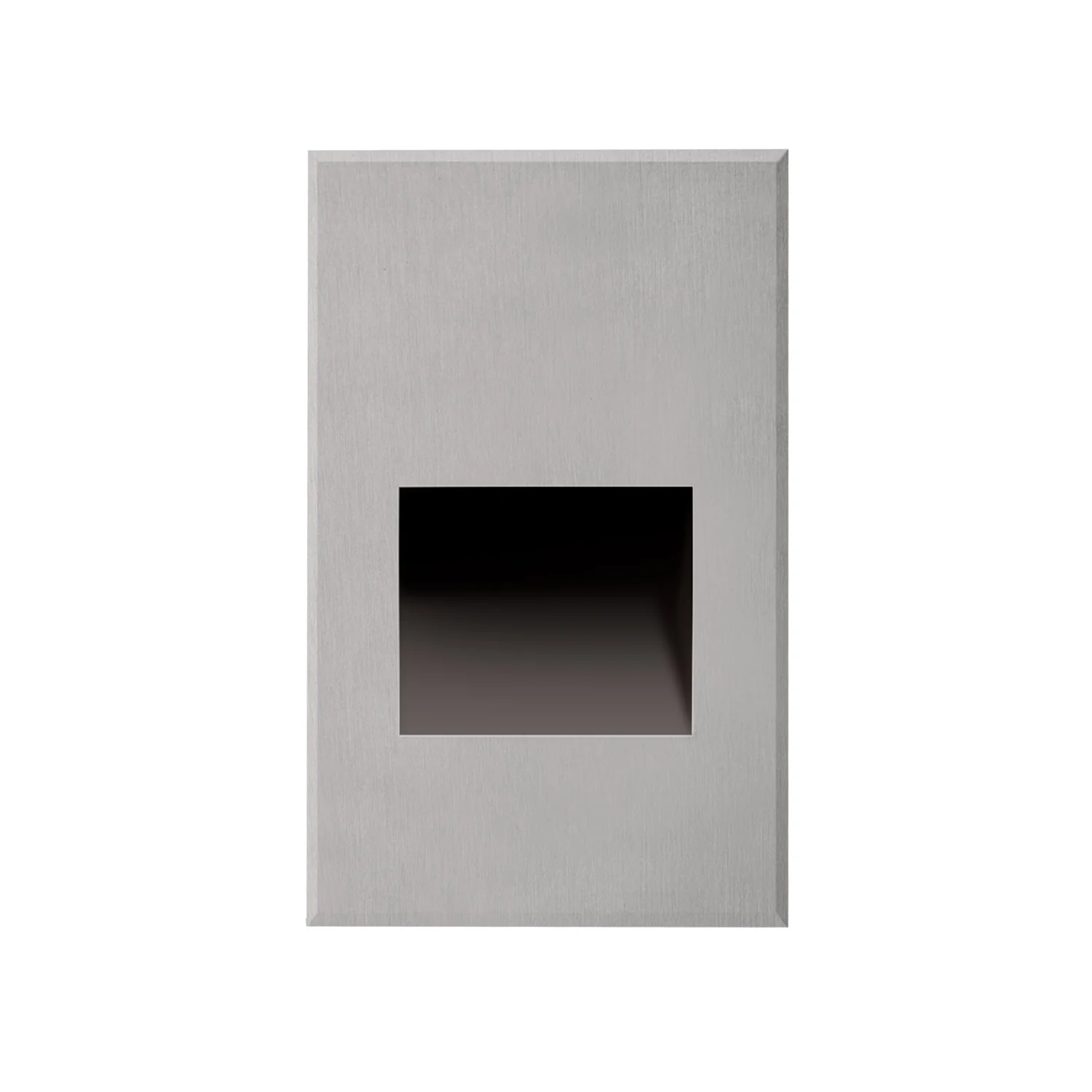 A horizontal rectangle-shaped recessed light in matte black, white powder, bronze or brushed nickel finish. The optically designed light control of Sonic's die cast Aluminum housing fully conceals the source. Ideal for step or courtesy light use. This fixture is rated for outdoor use but there is no reason it cannot be utilized indoors too. Only fits into a single gang box.