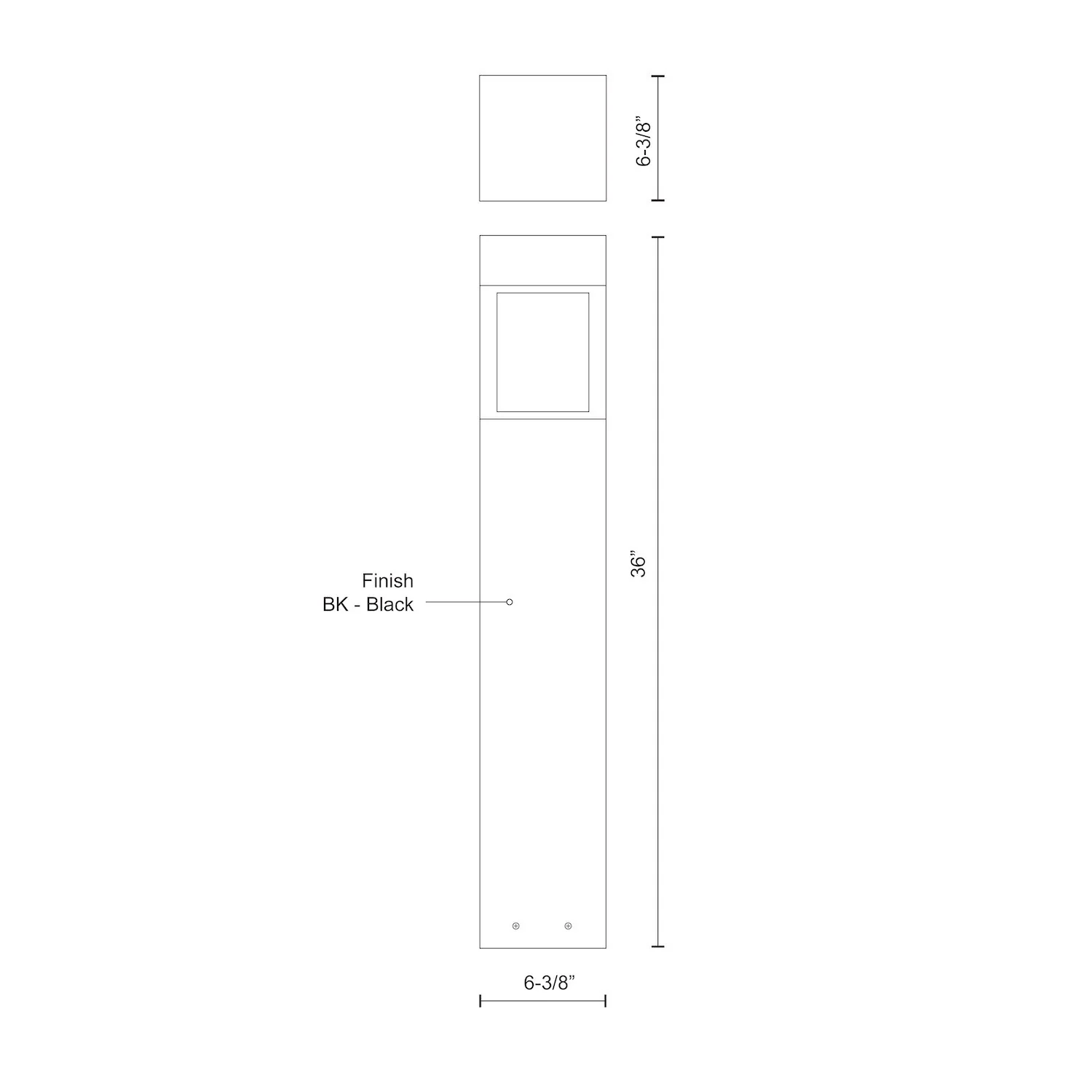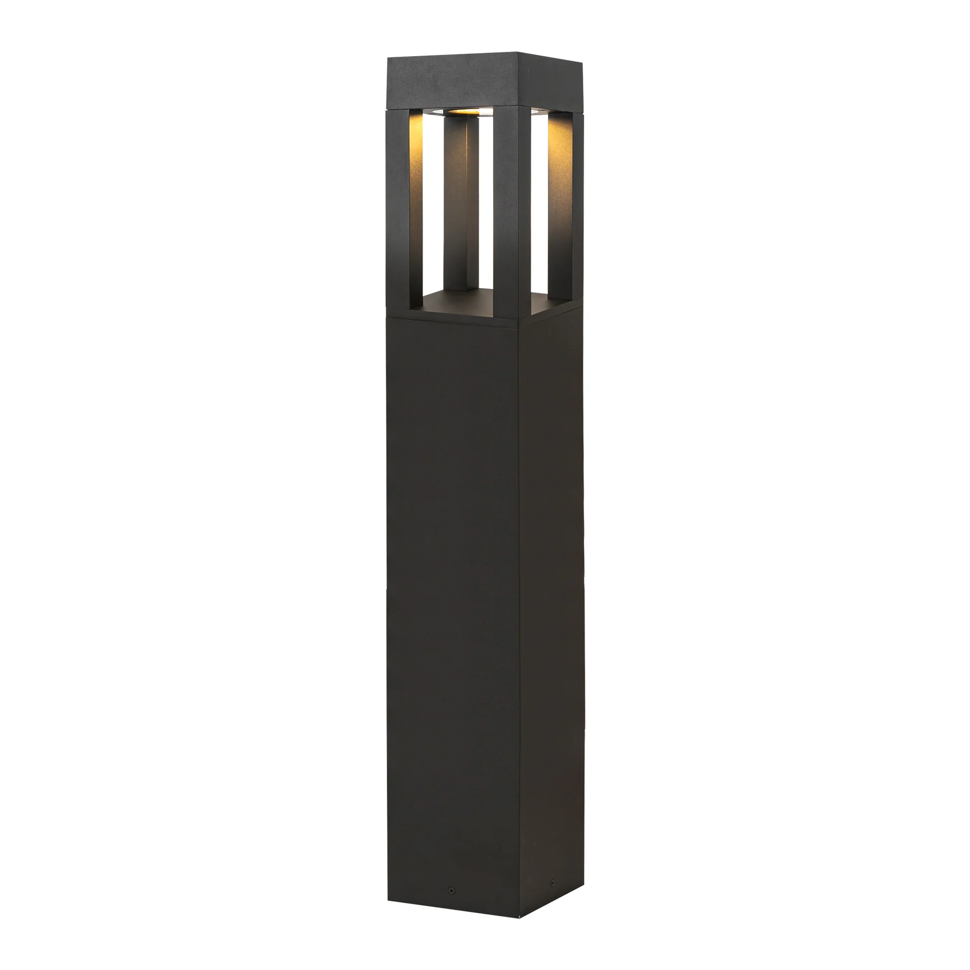 High pressure die-cast aluminum square-shaped housing with four rectangular-shaped openings, which radiates the light downward and throughout all openings and surrounding areas of the bollard. Available in two different heights and IK10 Rated.