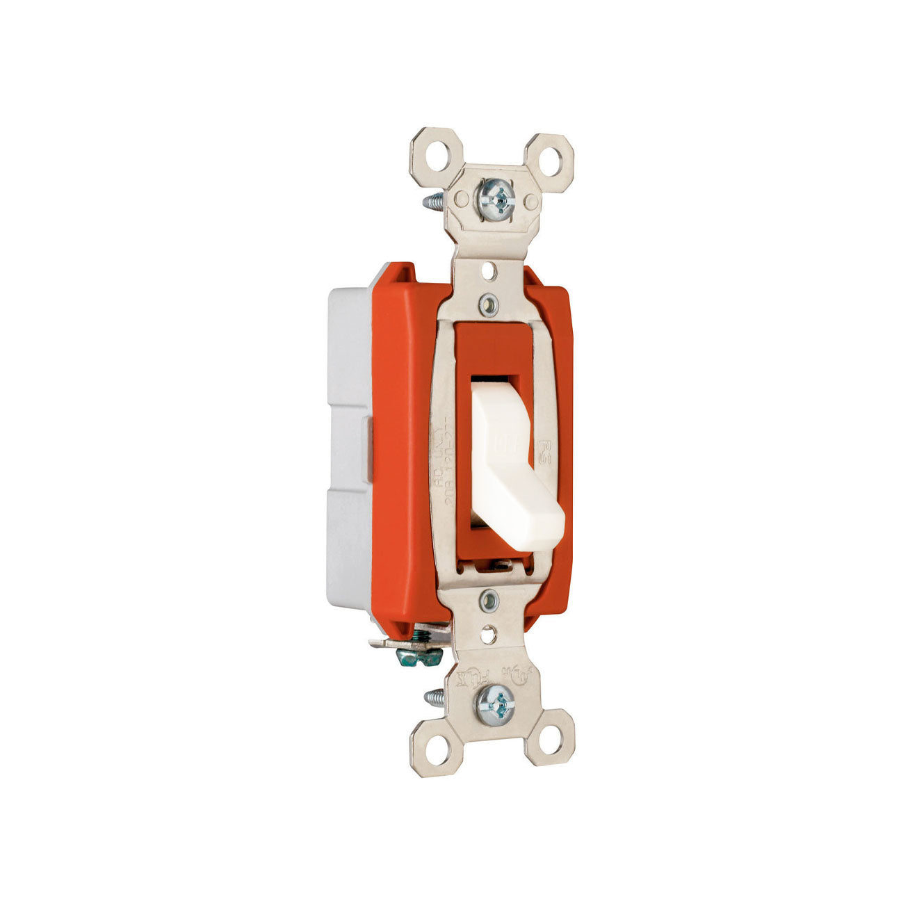 Industrial Extra Heavy Duty Specification Grade 1-Pole Toggle Switch, Back and Side-Wire, 20A 120/277V. Suitable for use as disconnect switch for equipment up to 20A.