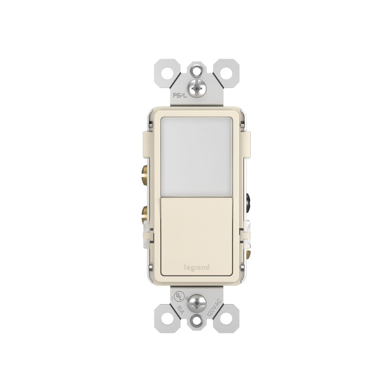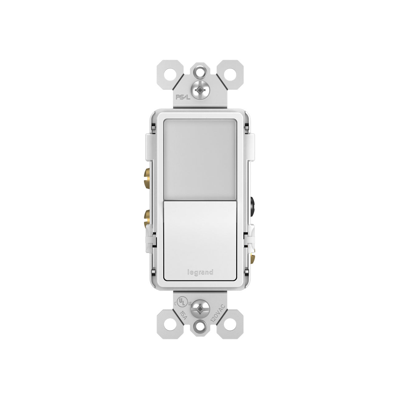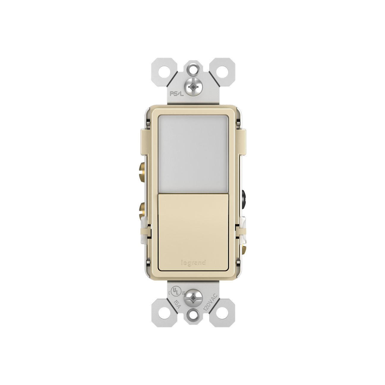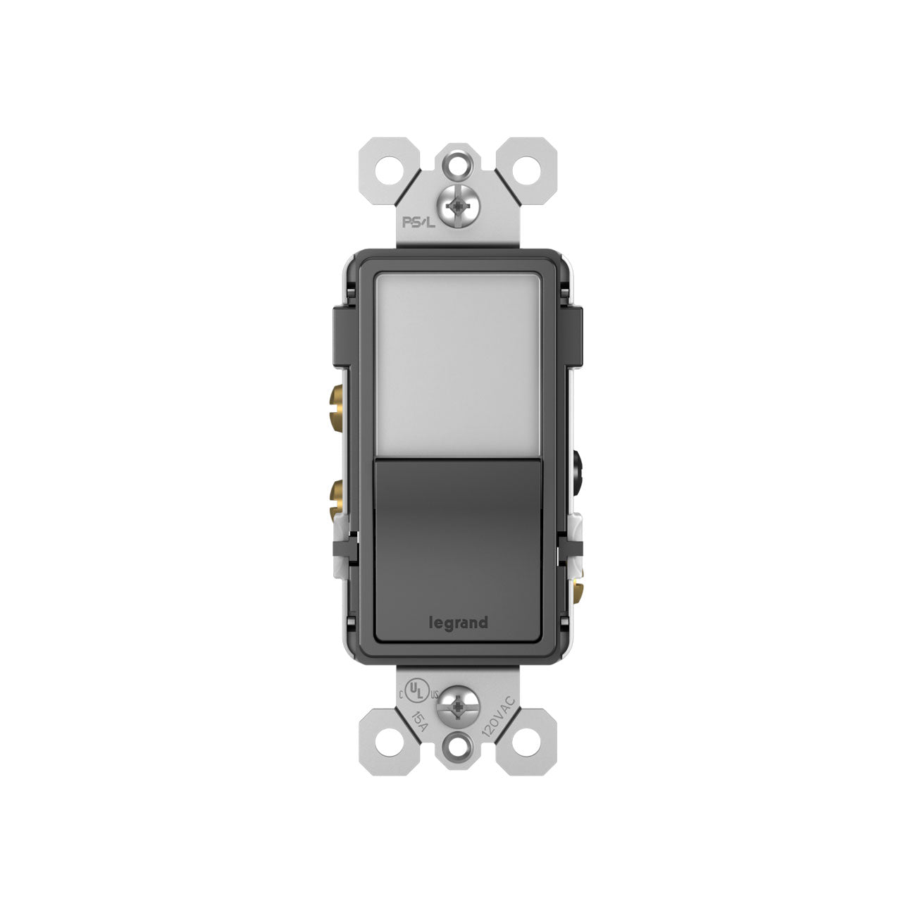 Combination switch and built-in night light. Easily replacing an existing single-pole or 3-way switch, the night light portion has five adjustable light levels and uses a hidden sensor to turn on when it is dark, making it a great addition to bathrooms & kitchens. Features the sleek, clean lines of radiant for a sophisticated touch.