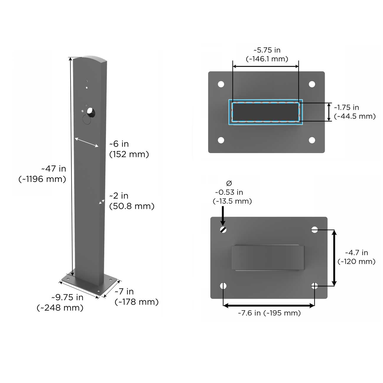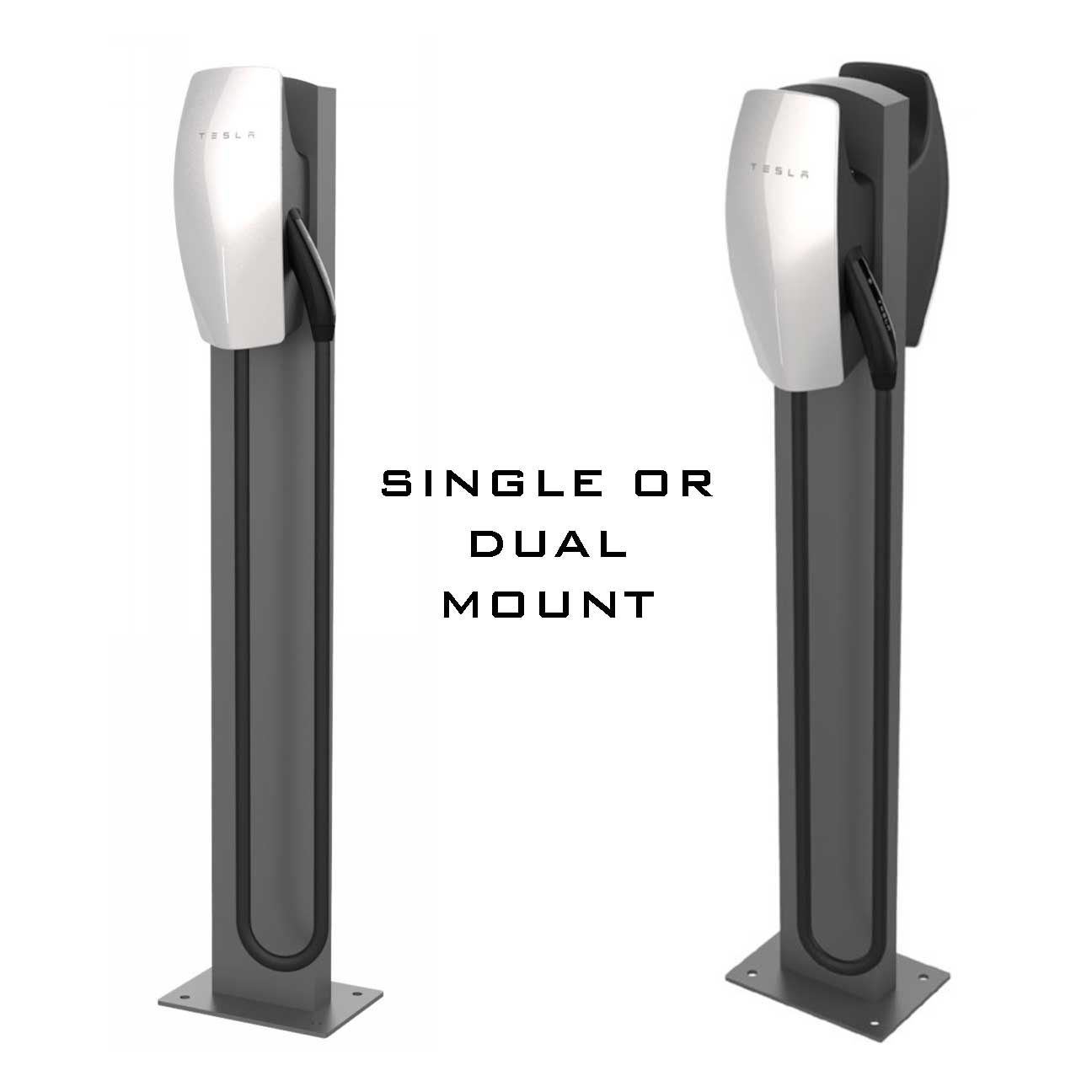 The Pedestal for Wall Connector is a rugged aluminum post designed for mounting Gen 3 Wall Connectors for stand-alone charging. With easy indoor and outdoor installation options, the pedestal is ideal for any driveway, parking lot or property that requires a free-standing structure to support charging equipment. The Pedestal for Wall Connector supports both single and dual mounted configurations for charging one or two Tesla vehicles at the same time.