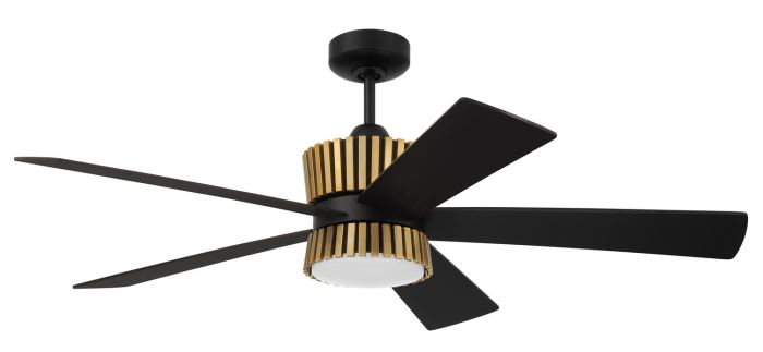 Designed with architectural detail to stand out and deliver maximum airflow, the Craftmade Theiry 52" ceiling fan features 5 custom reversible blades, a quiet energy-saving 6-speed, reversible DC motor, integrated dimmable 3000K - 5000K adjustable LED light with optional lens cover and is easily controlled with either the included remote control or the integrated WIFI featuring breeze and timer functions compatible for use with most smart home devices, smart phones and systems with no additional hub needed.