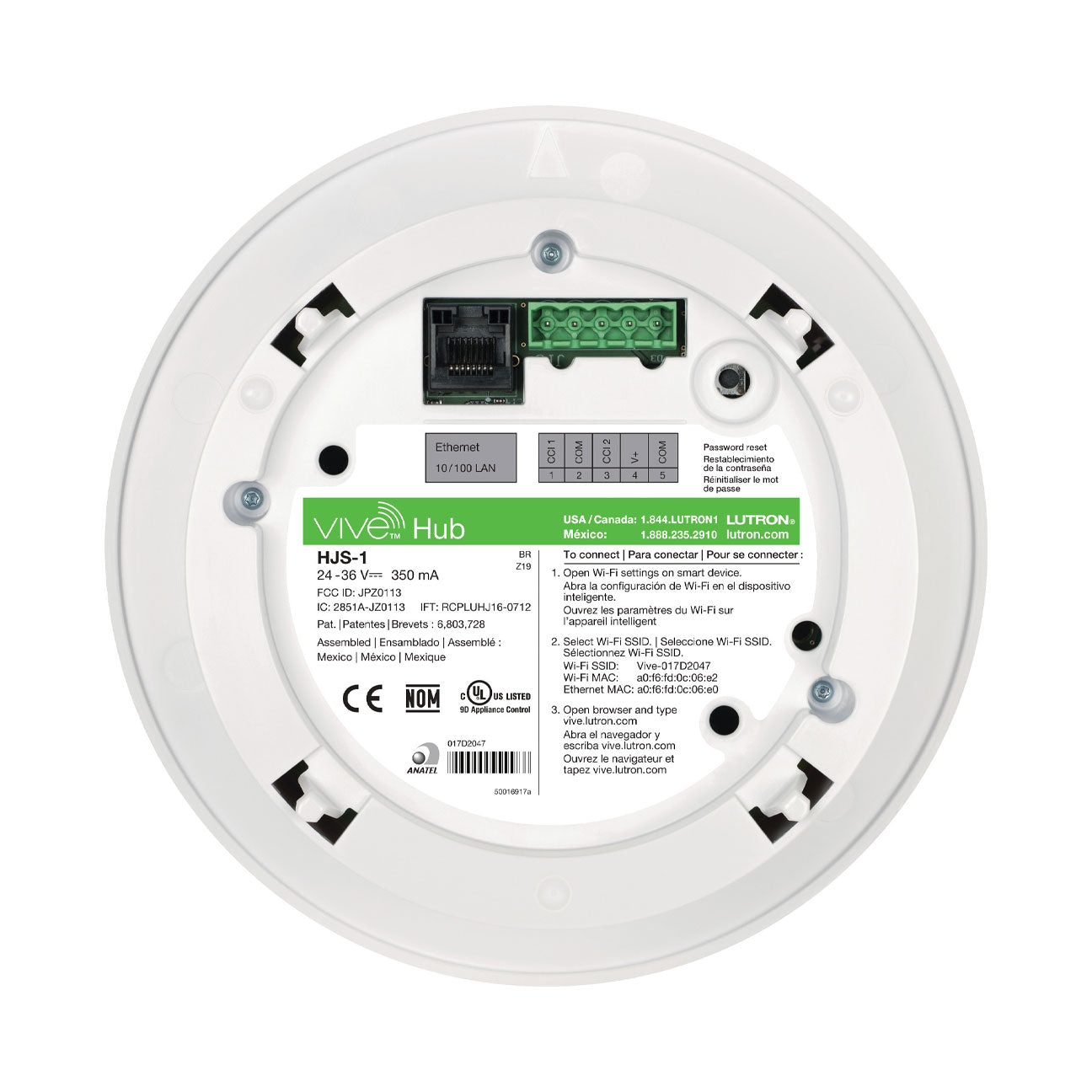 The Vive hub provides a connection point for Lutron Vive devices such as PowPak wireless dimming and switching modules, PowPak Wireless Fixture Controllers, PowPak 20 A Relay Modules, Maestro Wireless dimmers and switches, Wireless Receptacle controls, Pico remote controls, Radio Powr Savr occupancy sensors, and daylight sensors.