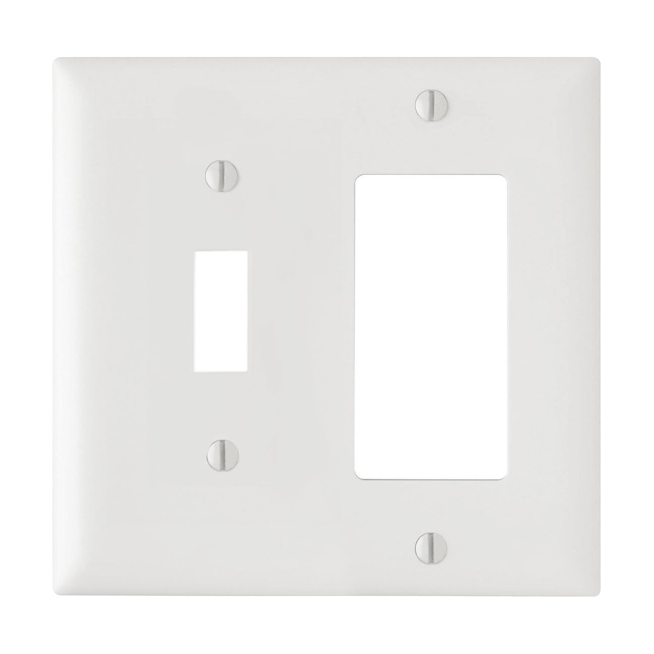 Combination wall plate provides maximum durability in plastic wall plates. Self-extinguishing nylon construction makes these wall plates virtually unbreakable. They are 3/16 of an inch higher and wider than typical plastic wall plates - not enough to be apparent to the eye, but the extra size cuts cost by reducing dry wall rework.