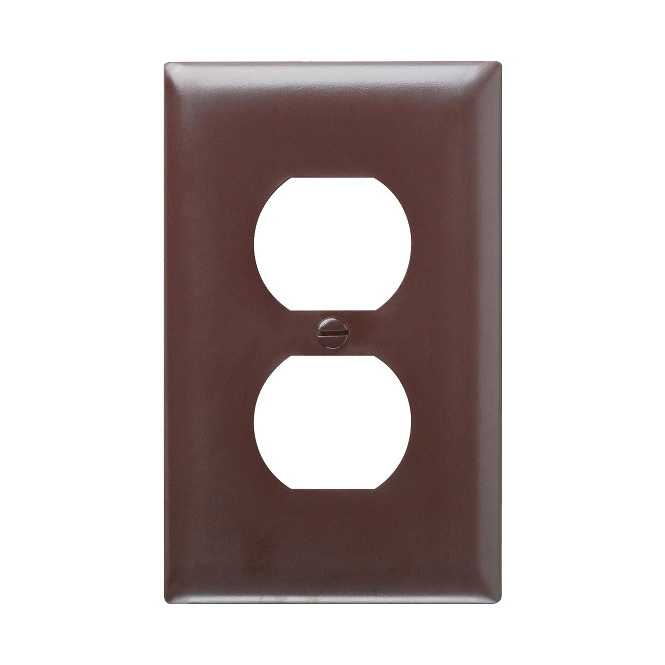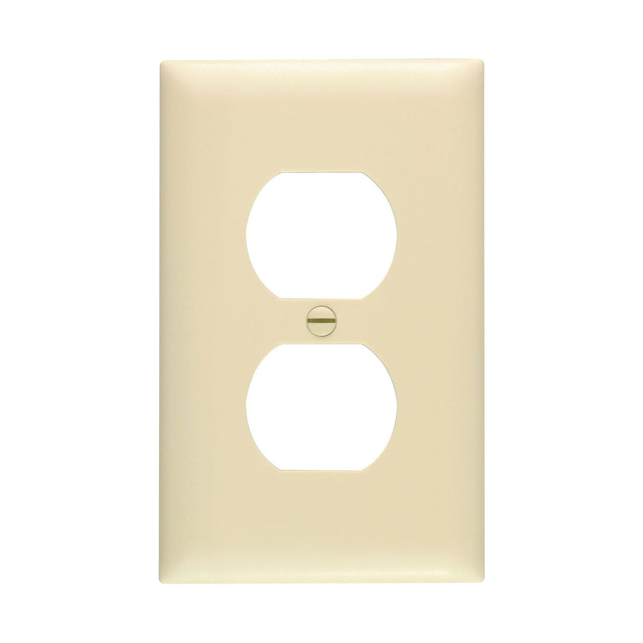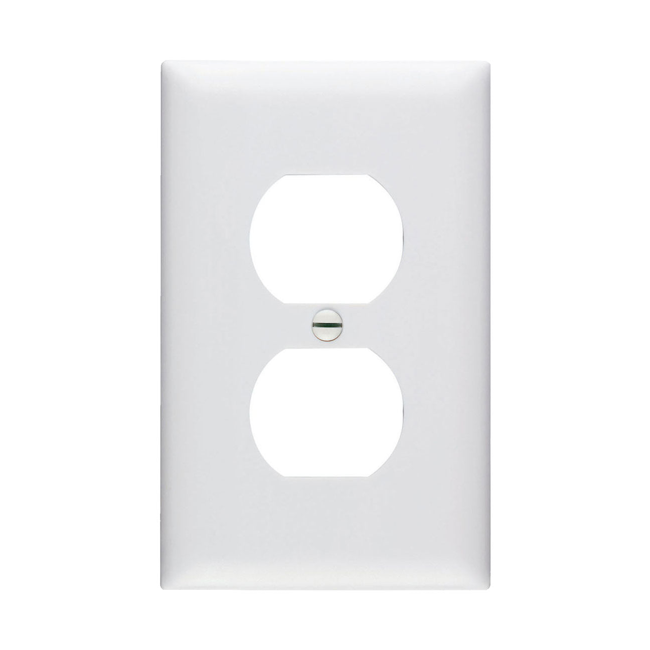 This 1-gang wall plate features durable nylon construction and classic duplex openings for standard receptacles. Designed for impact resistance and longevity, it’s ideal for commercial, industrial, and residential settings. The smooth surface and screw-mounted design provide a clean, secure fit around electrical devices.