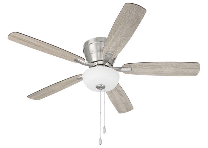 The Wheeler 52" indoor flushmount ceiling fan with bowl light kit by Craftmade combines classic style with low ceiling compatibility. Featuring custom reversible blades, this efficient pull chain controlled, 3-speed, reversible motor with included optional bowl light kit with 2 x 9W dimmable LED bulbs included.